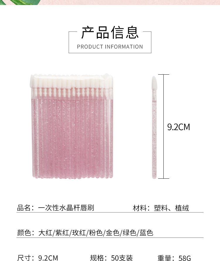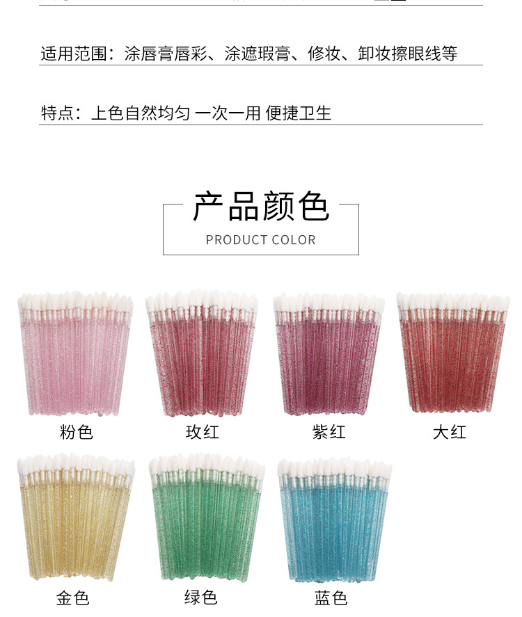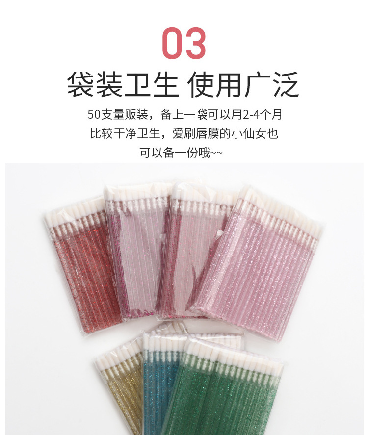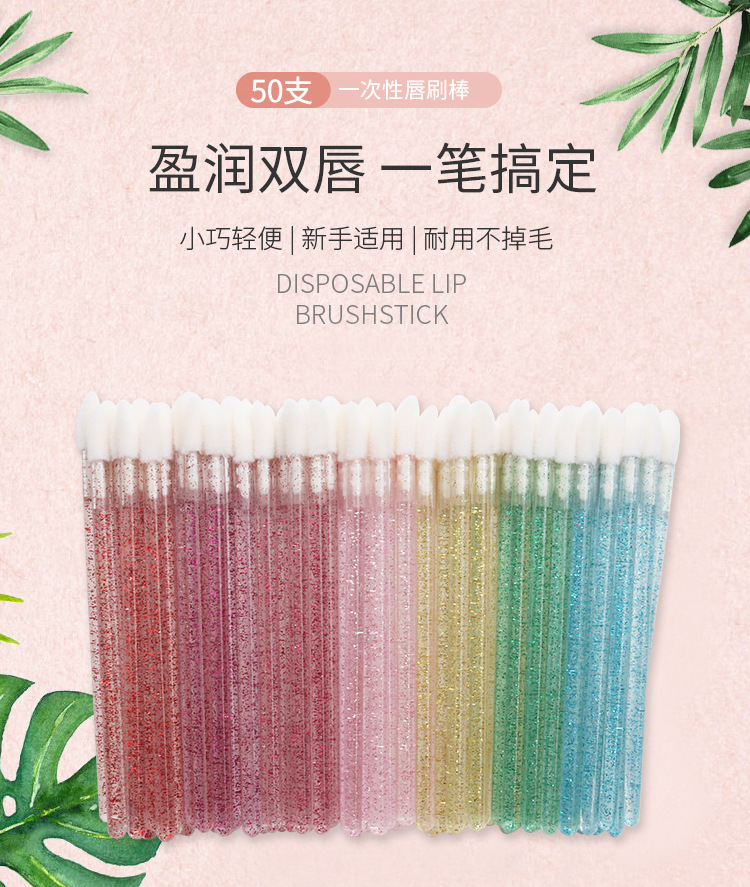 50 piezas/paquete Cepillo de labios de varilla de cristal desechable Cepillo de brillo de labios Cepillo de maquillaje Herramienta de belleza Cepillo de lápiz labial portátil
