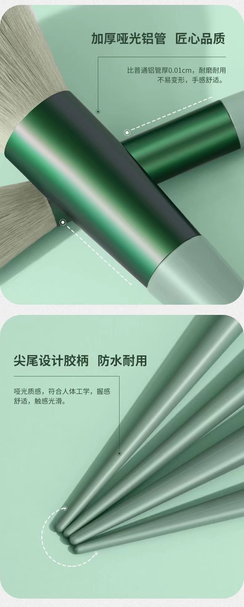 Belleza Four Seasons verde maquillaje cepillo traje de cerdas suave 13 Blush sombra de ojos corrector Fundación polvo suelto cepillo de alta Luz