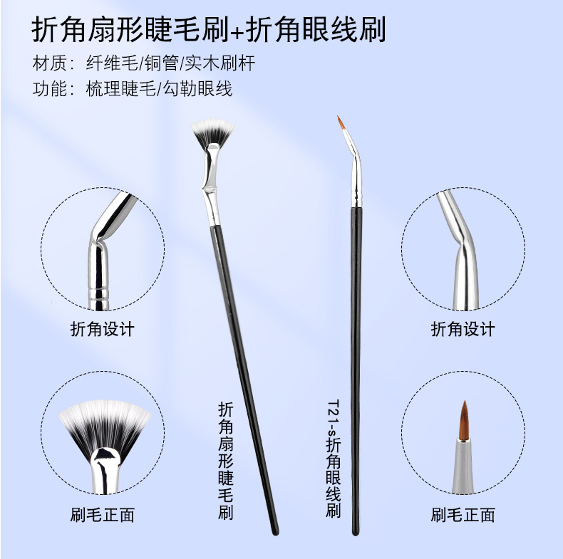 Tiktok nuevo cepillo popular en forma de abanico de doble capa cepillo de pestañas ángulo plegable cepillo de delineador de ojos cepillo de pestañas inferior raíz clara en stock