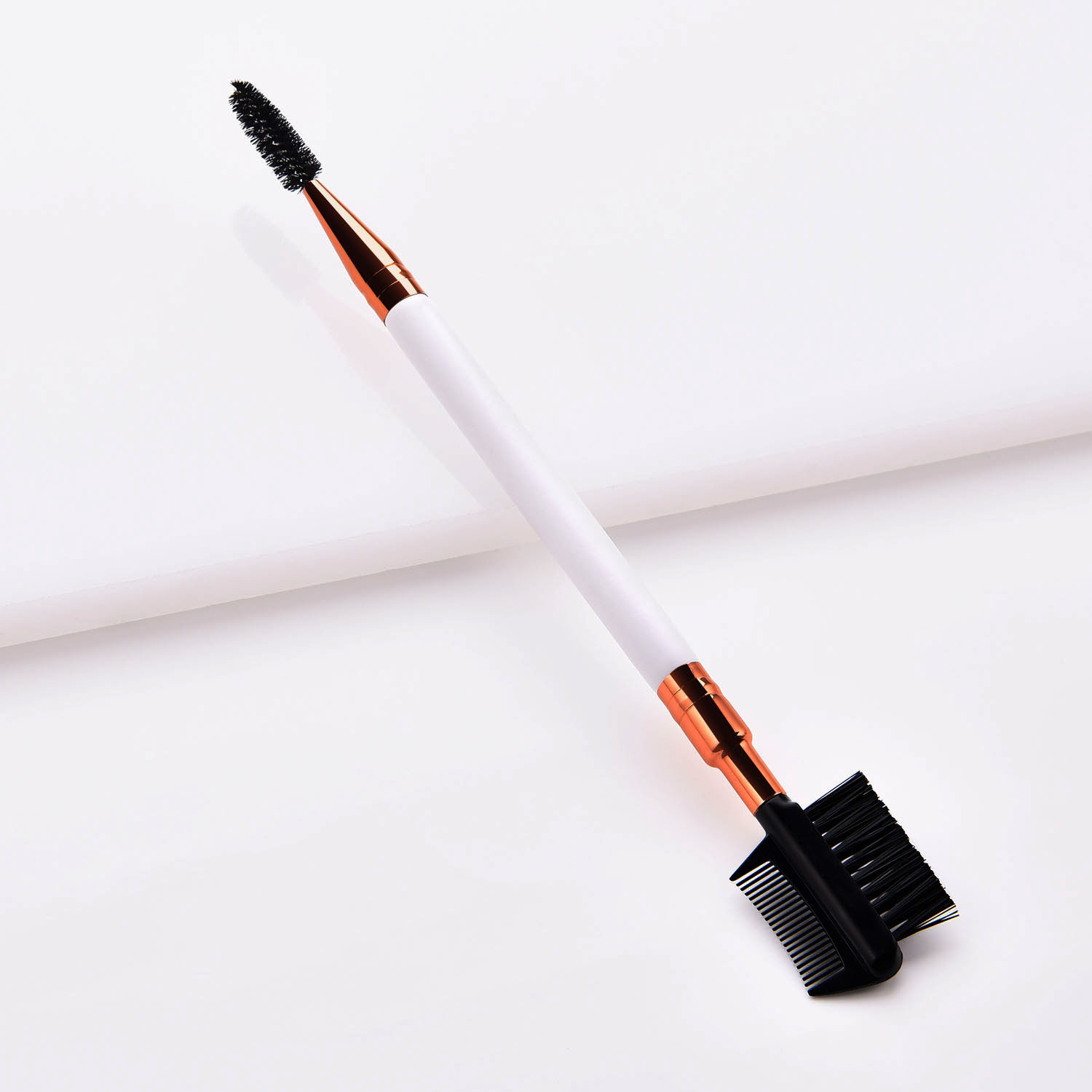 Mango blanco de doble cabeza de pestañas peine corrección de cejas peine de cejas cepillo de cejas de cerdas de fibra cepillo de cejas pestañas cepillo de doble propósito