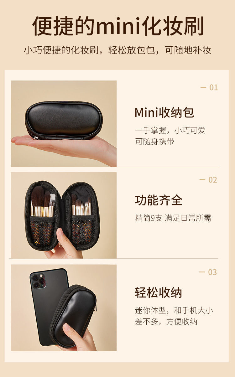 9 mini pinceles de maquillaje traje portátil de viaje pequeño cepillo principiante cepillo de puntos de polvo suelto