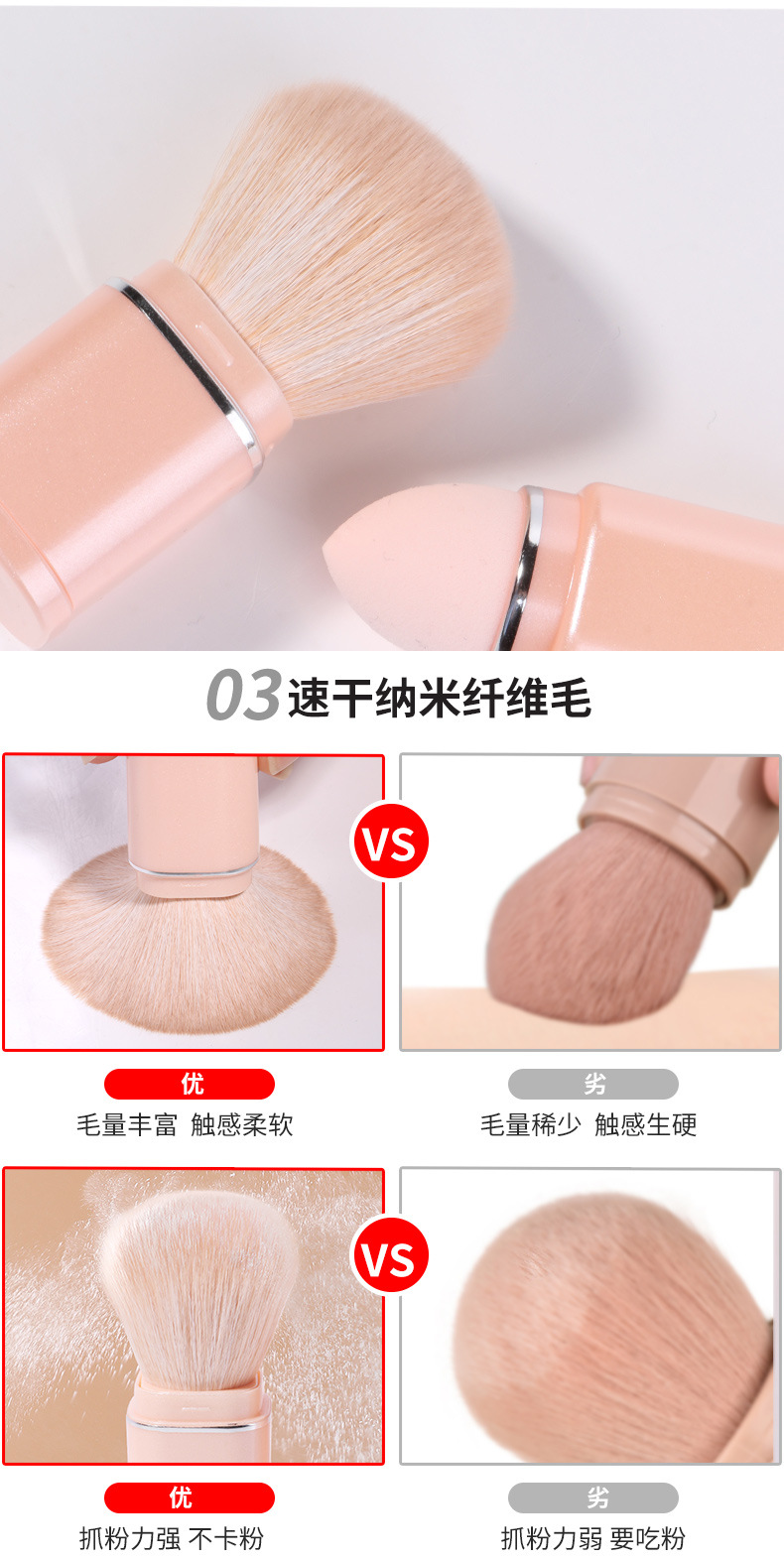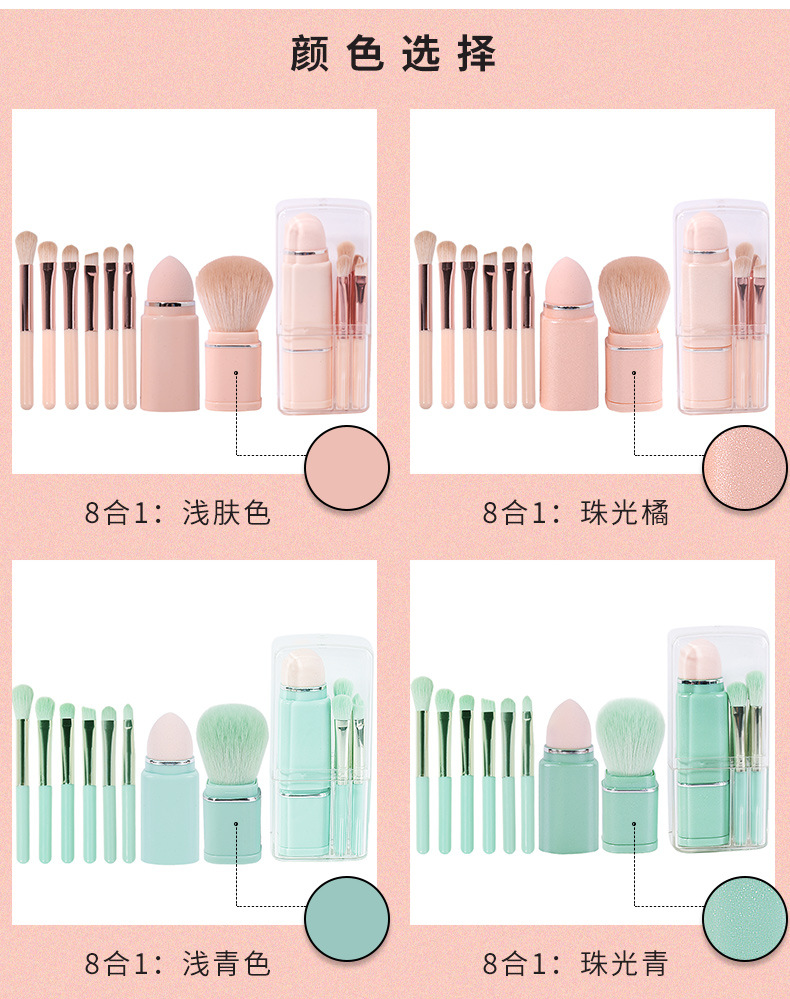 Yasna nuevo portátil Mini 8-en-1 Cepillo de maquillaje retráctil polvo suelto Blush detalle de los ojos herramientas de belleza