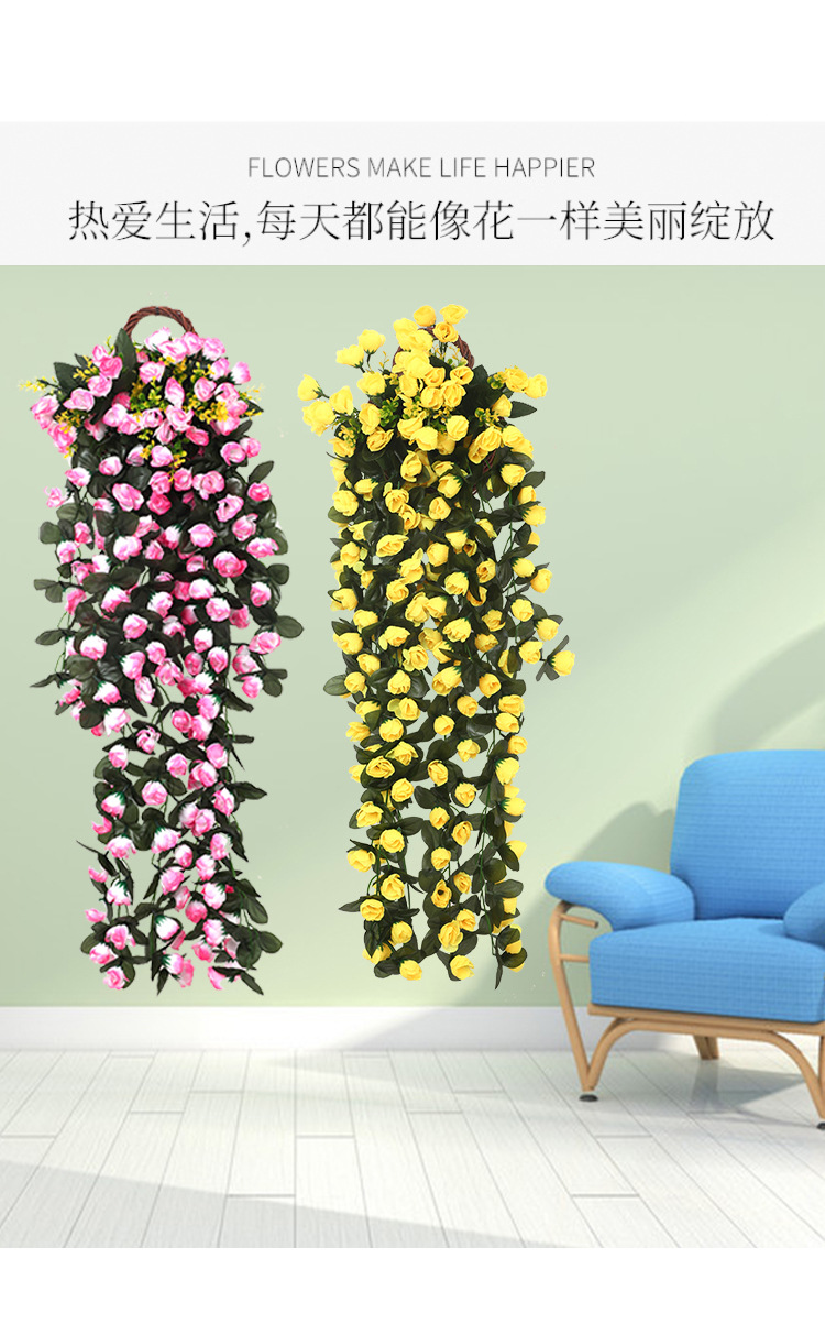 Enredaderas de glicinia artificiales, decoración para bodas, pared de flores artificiales, cesta colgante, decoración para sala de estar, flores de seda de glicinia