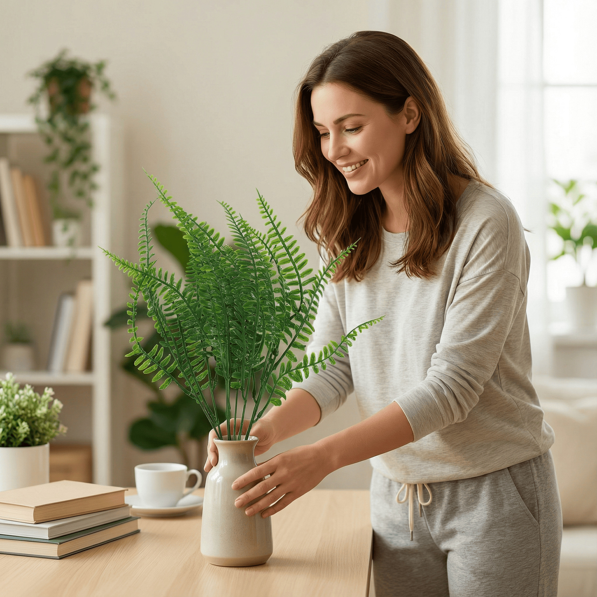 Hierba persa 7-tenedor agua hierba manejar racimos helechos Planta artificial accesorios de pared helechos de dientes de oveja planta verde artificial
