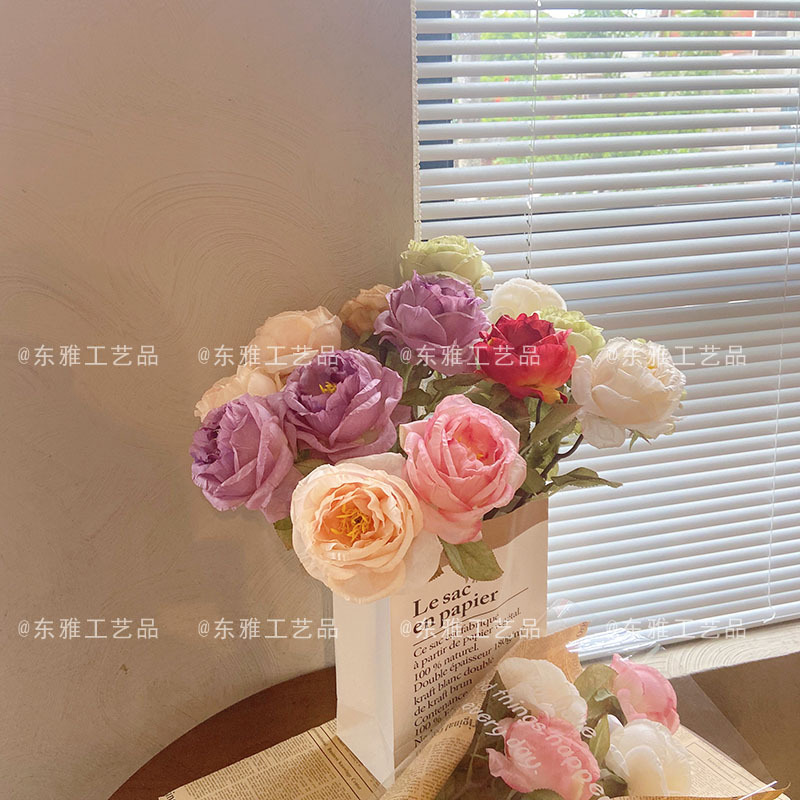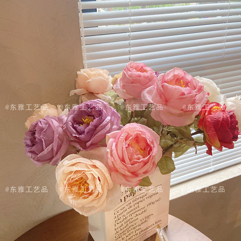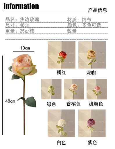Borde de goma artificial retro transfronterizo Rosa quemado solo borde al horno flor falsa ramo de la boda borde quemado artificial Rose