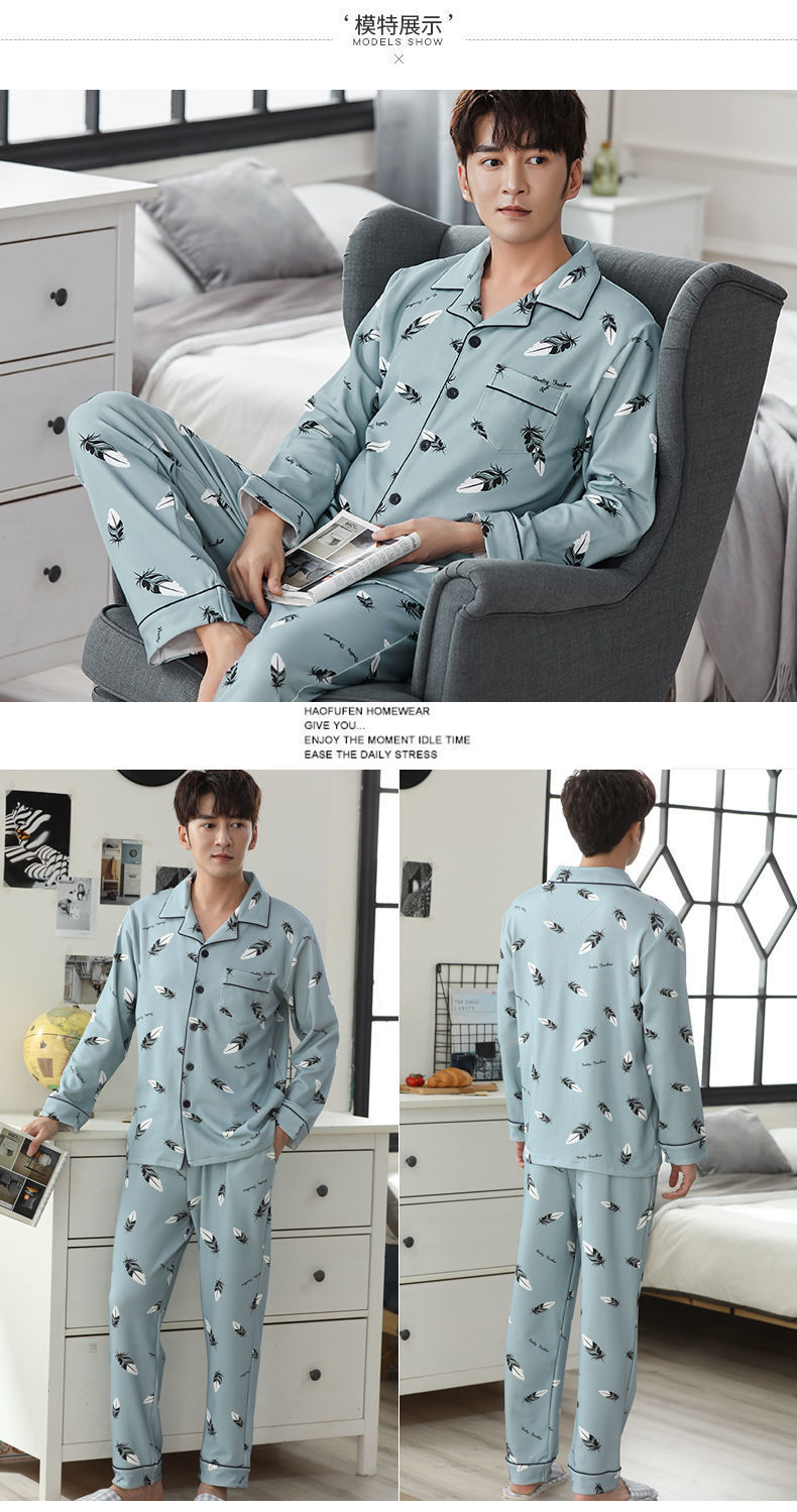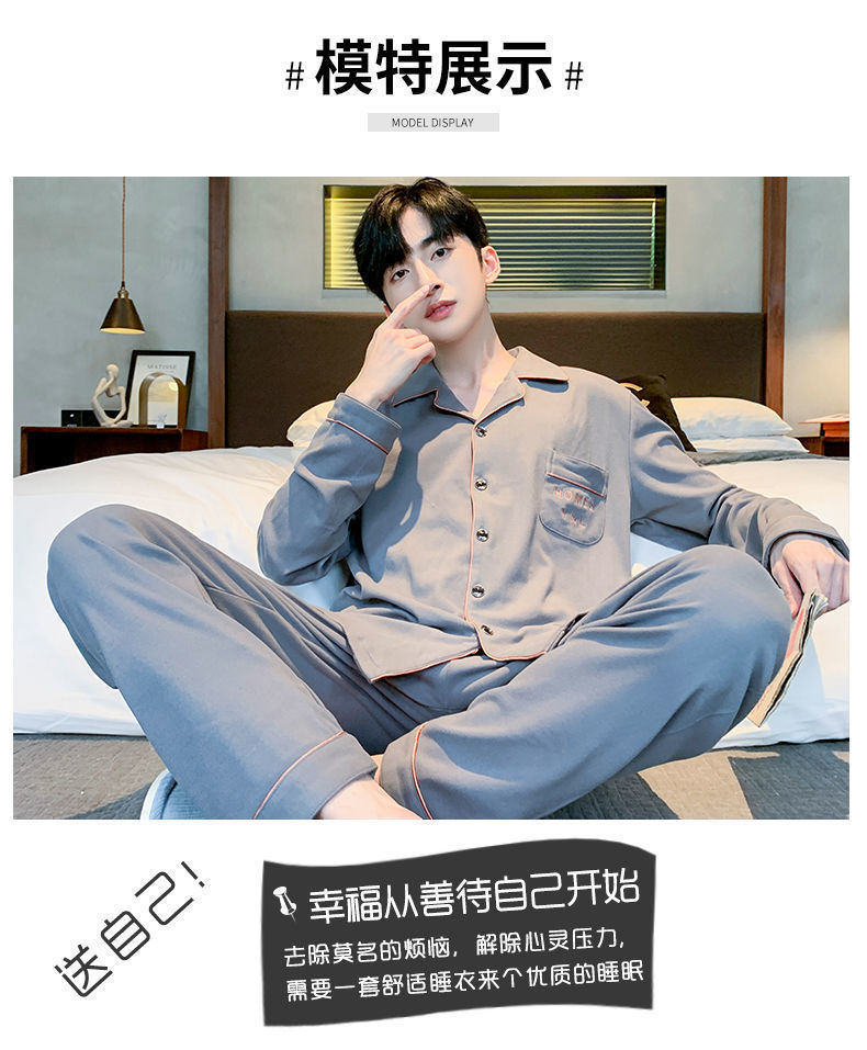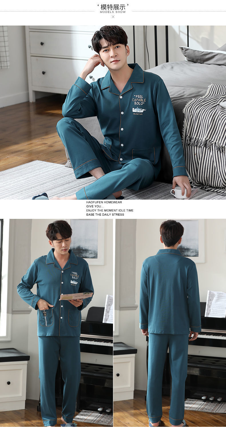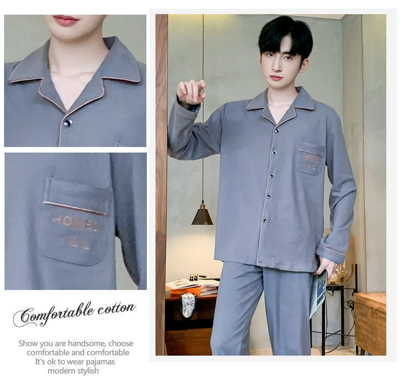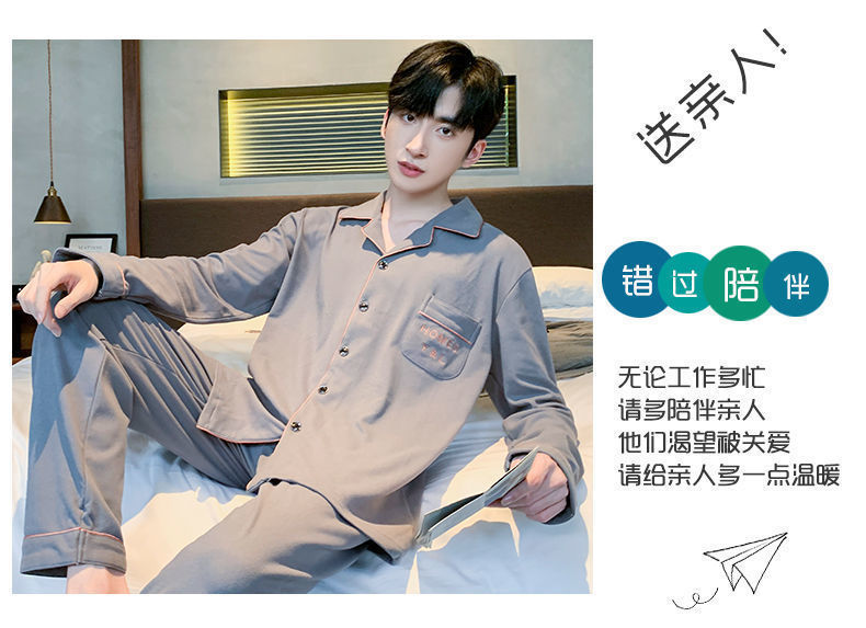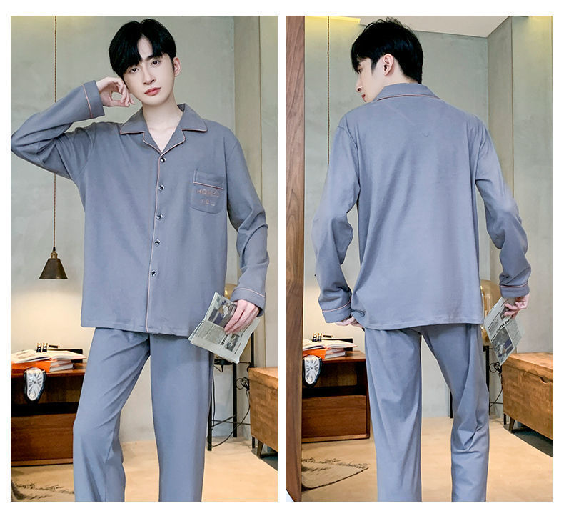 100% pijamas de algodón de los hombres de primavera y otoño de algodón de manga larga casual adolescentes pueden usar fuera de algodón