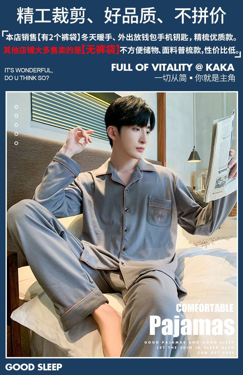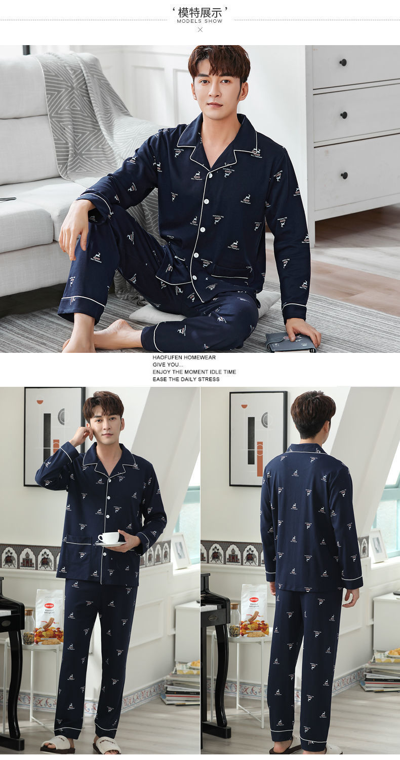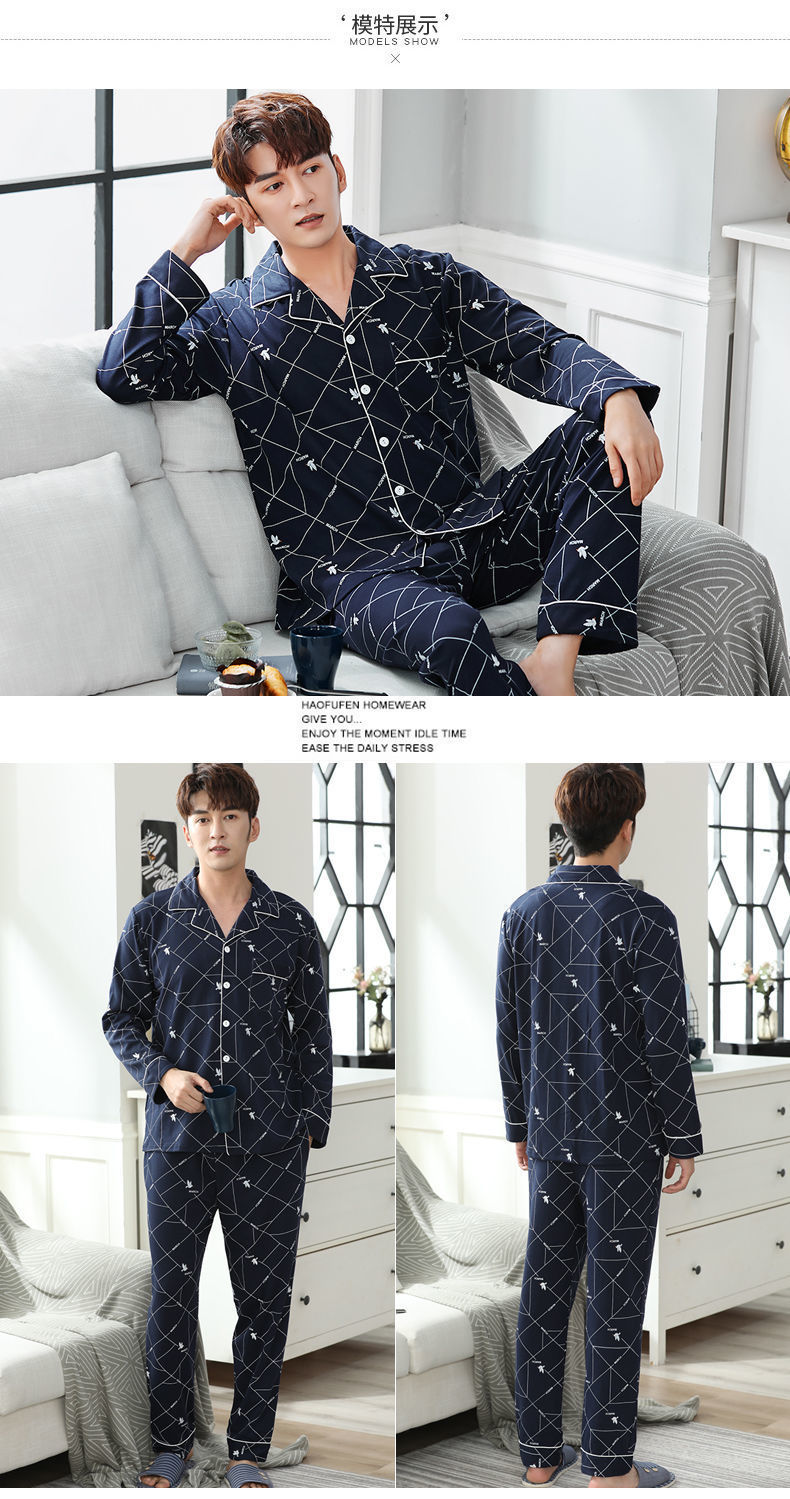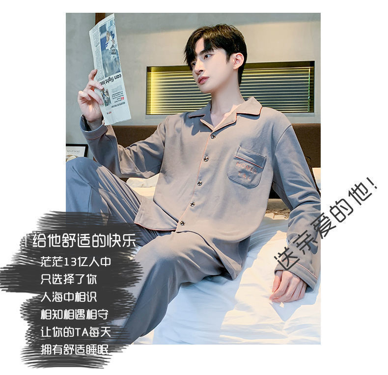 100% pijamas de algodón de los hombres de primavera y otoño de algodón de manga larga casual adolescentes pueden usar fuera de algodón
