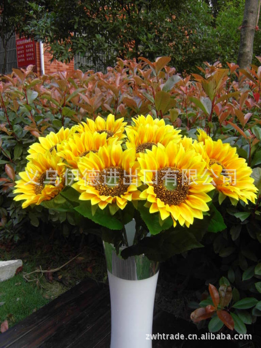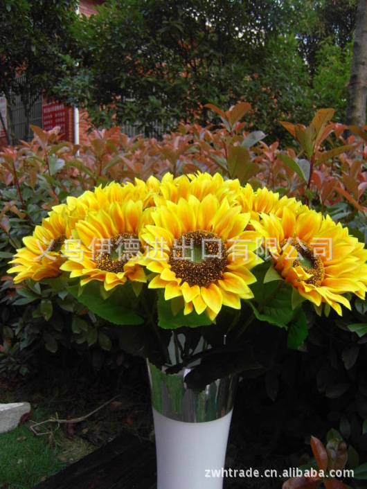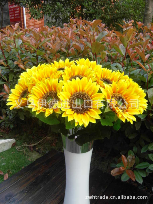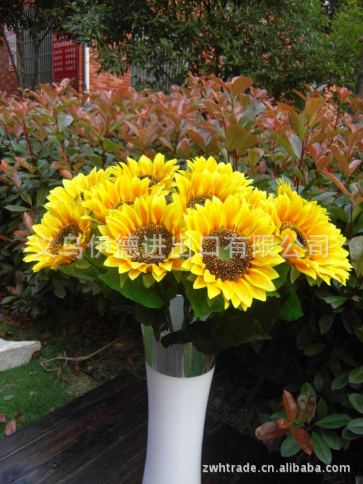 Fábrica directa piso simulación ramo al por mayor solo girasol decoración del hogar flor falsa decoración de la boda cuidado