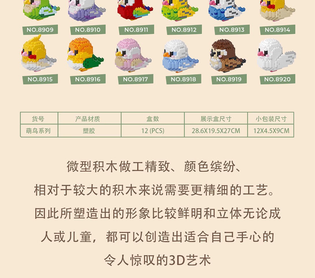 ![Conjunto completo de 12 pájaros lindos con caja de presentación [2931 Partículas]](https://cbu01.alicdn.com/img/ibank/O1CN01feaajP2FbnRETO4FU_!!2209906108899-0-cib.jpg)