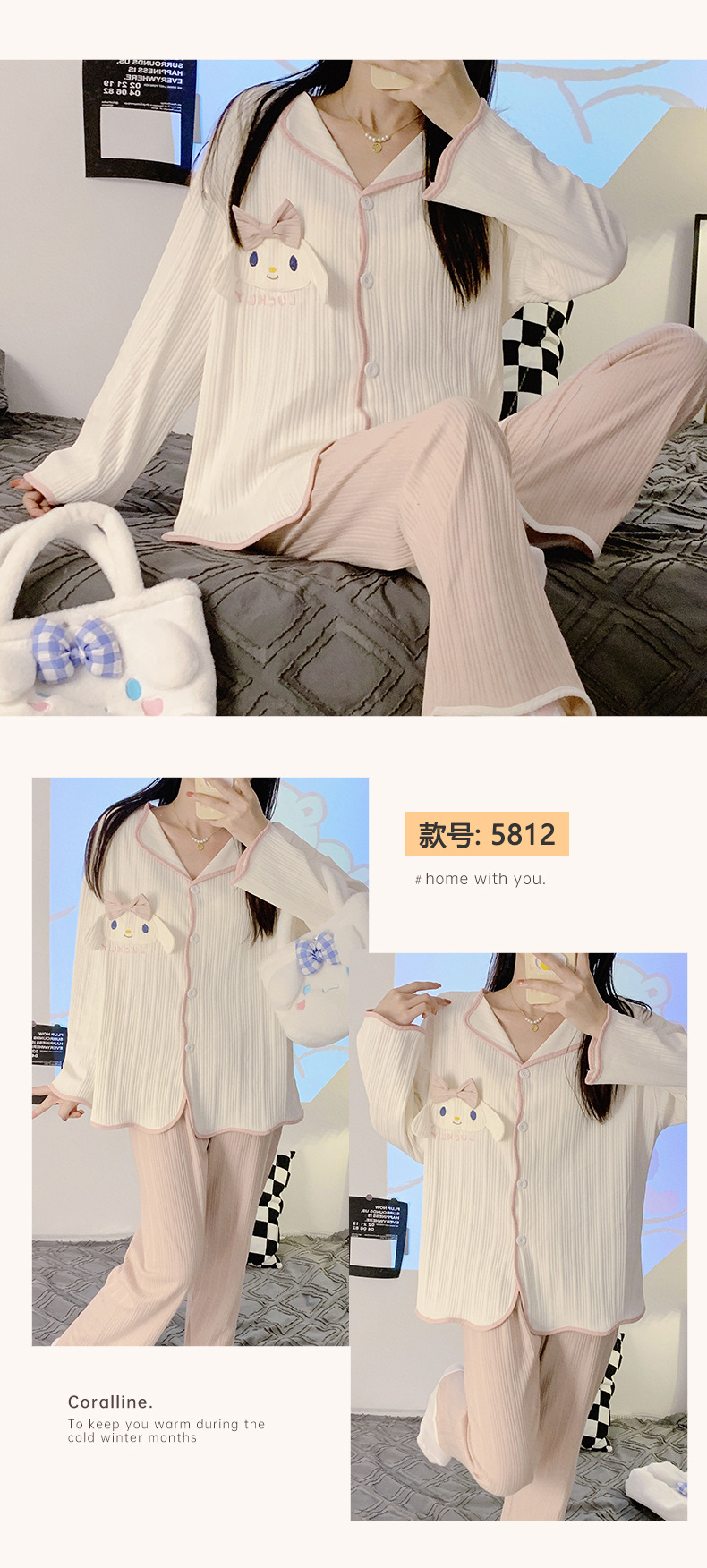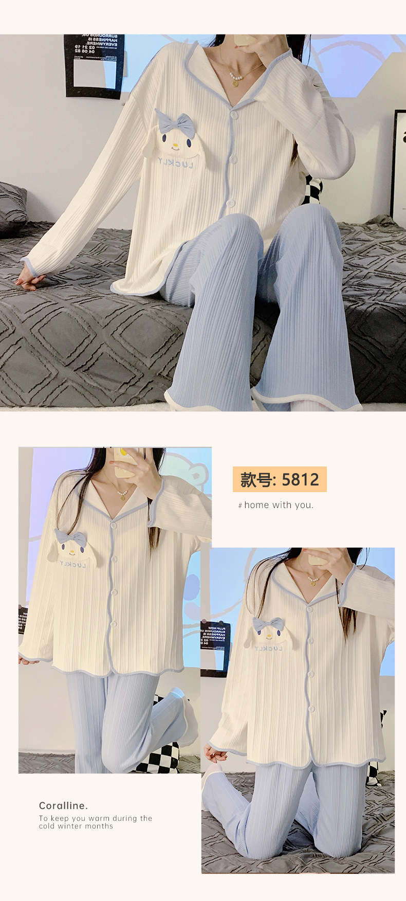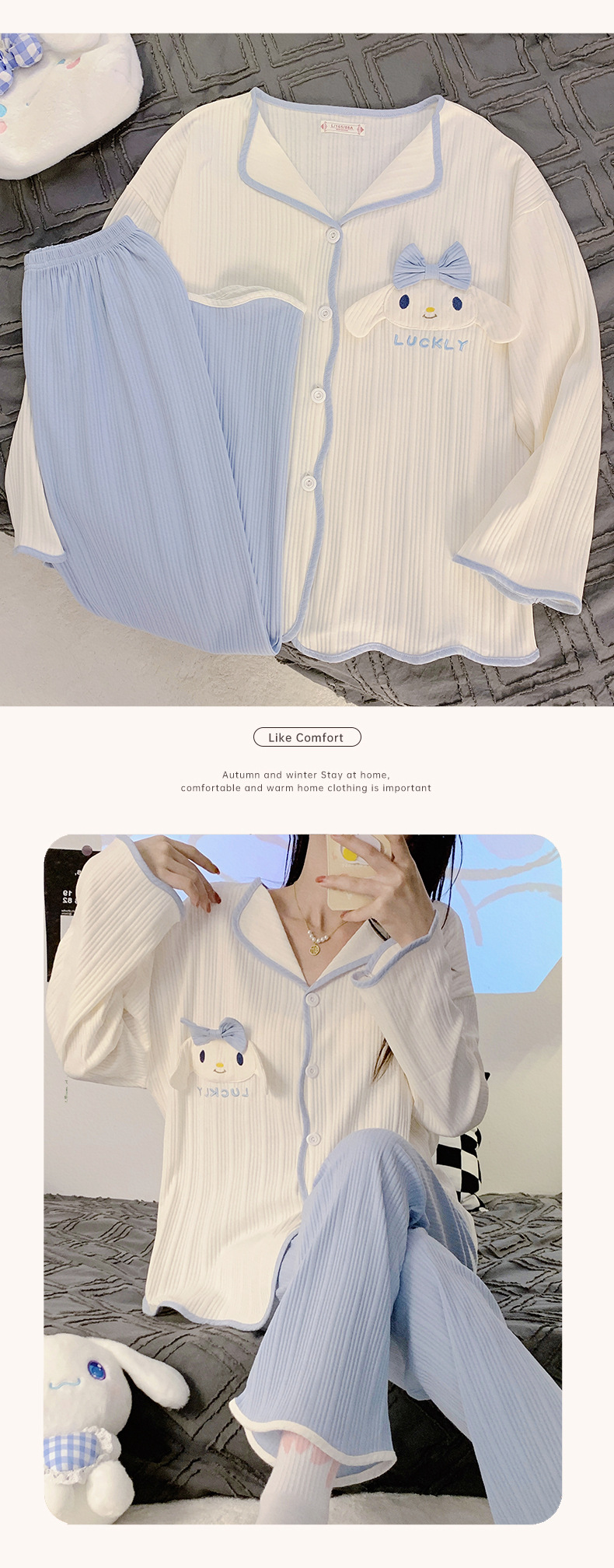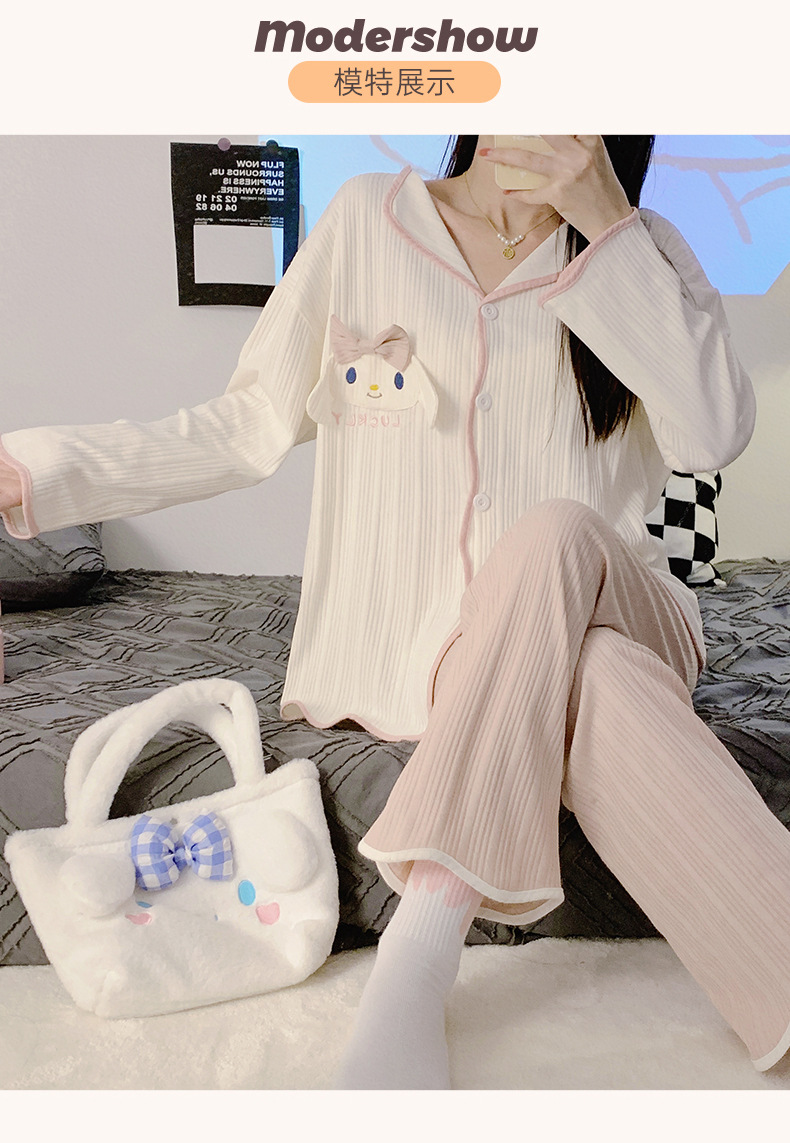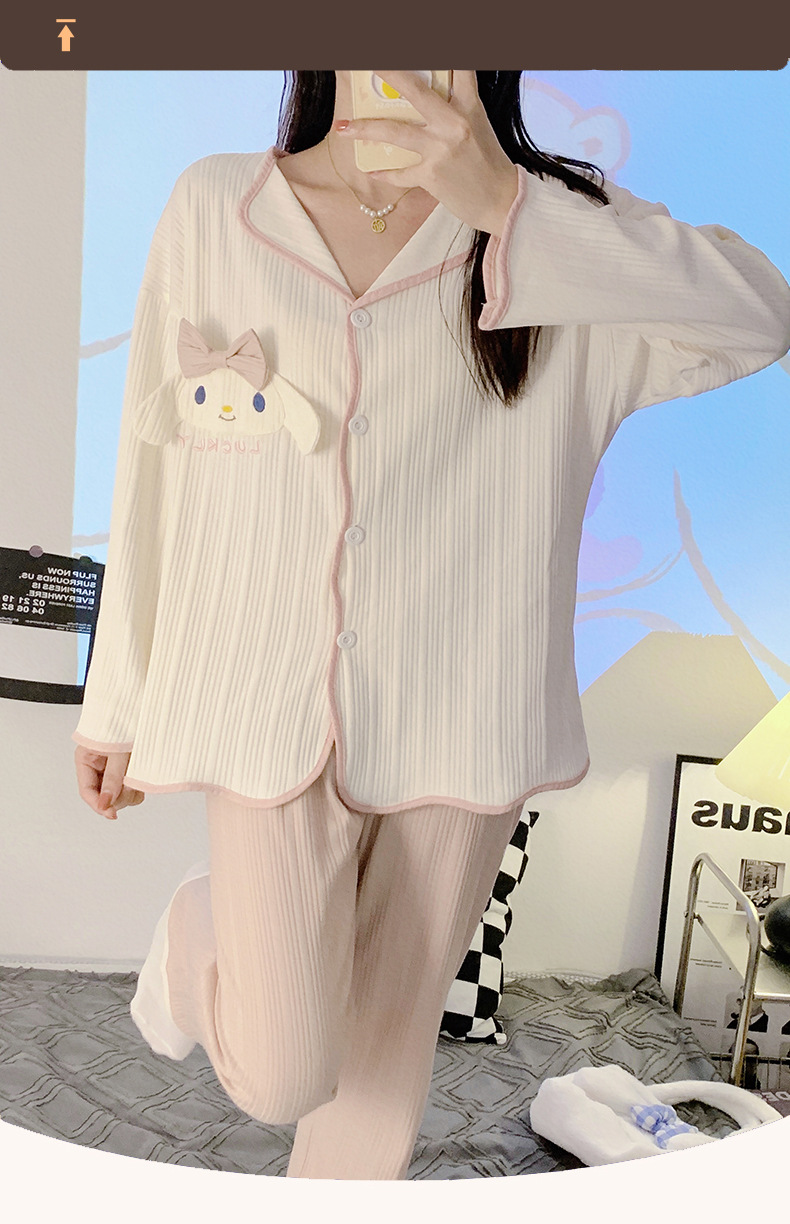 Nueva primavera y verano de dibujos animados pijamas de manga larga pijamas lindo de las mujeres del perro Yugui de la muchacha del hogar traje de mujer en línea celebridad entrega en vivo