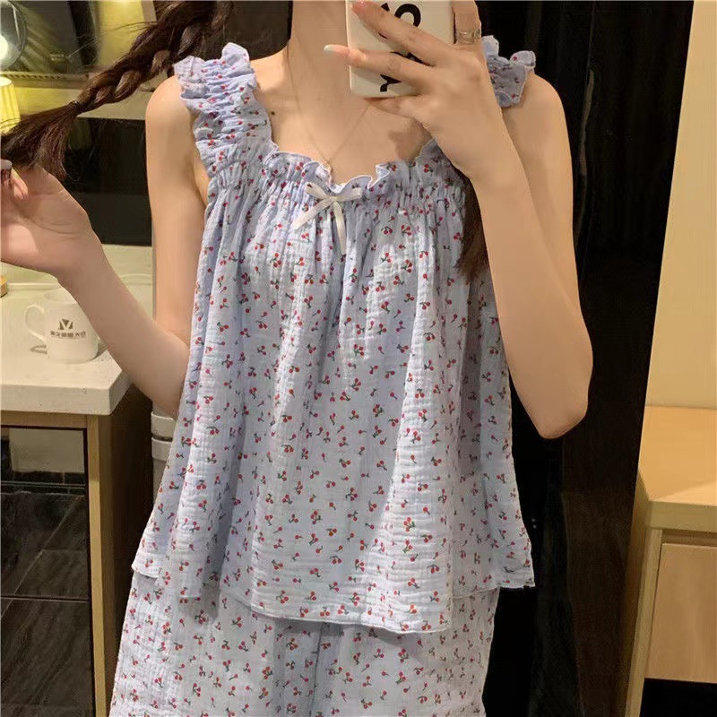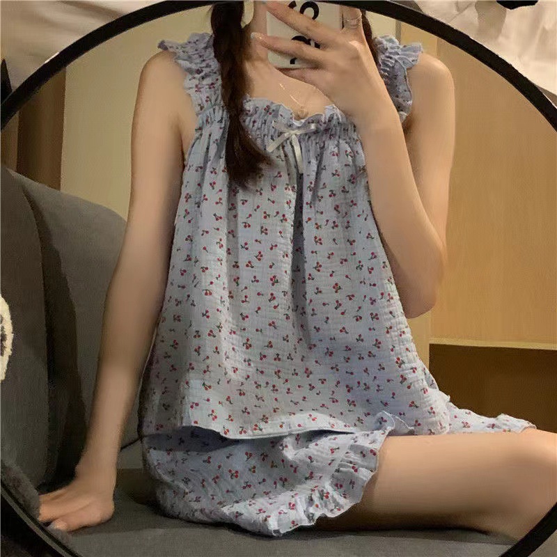 Verano burbuja arruga pijamas de las mujeres lindas pantalones cortos tirantes de alto grado ins estilo traje homewear pijamas de las mujeres