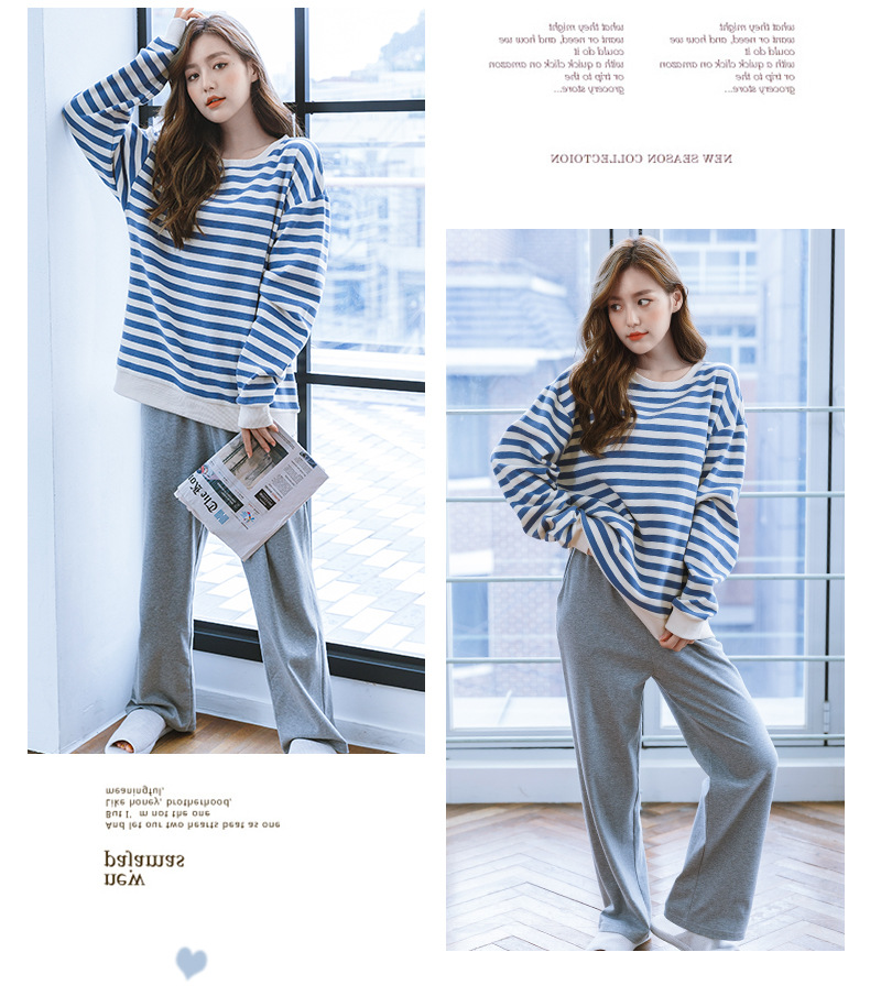 Pijamas de algodón a rayas Otoño e Invierno de las mujeres de manga larga de moda estilo coreano Internet celebridad más el tamaño de algodón puro ropa de abrigo homewear traje