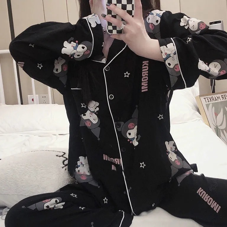 Estilo coreano japonés pijamas de dibujos animados mujer coolomi linda chica corazón ins estilo pantalones de manga larga desgaste del hogar otoño celebridad de Internet