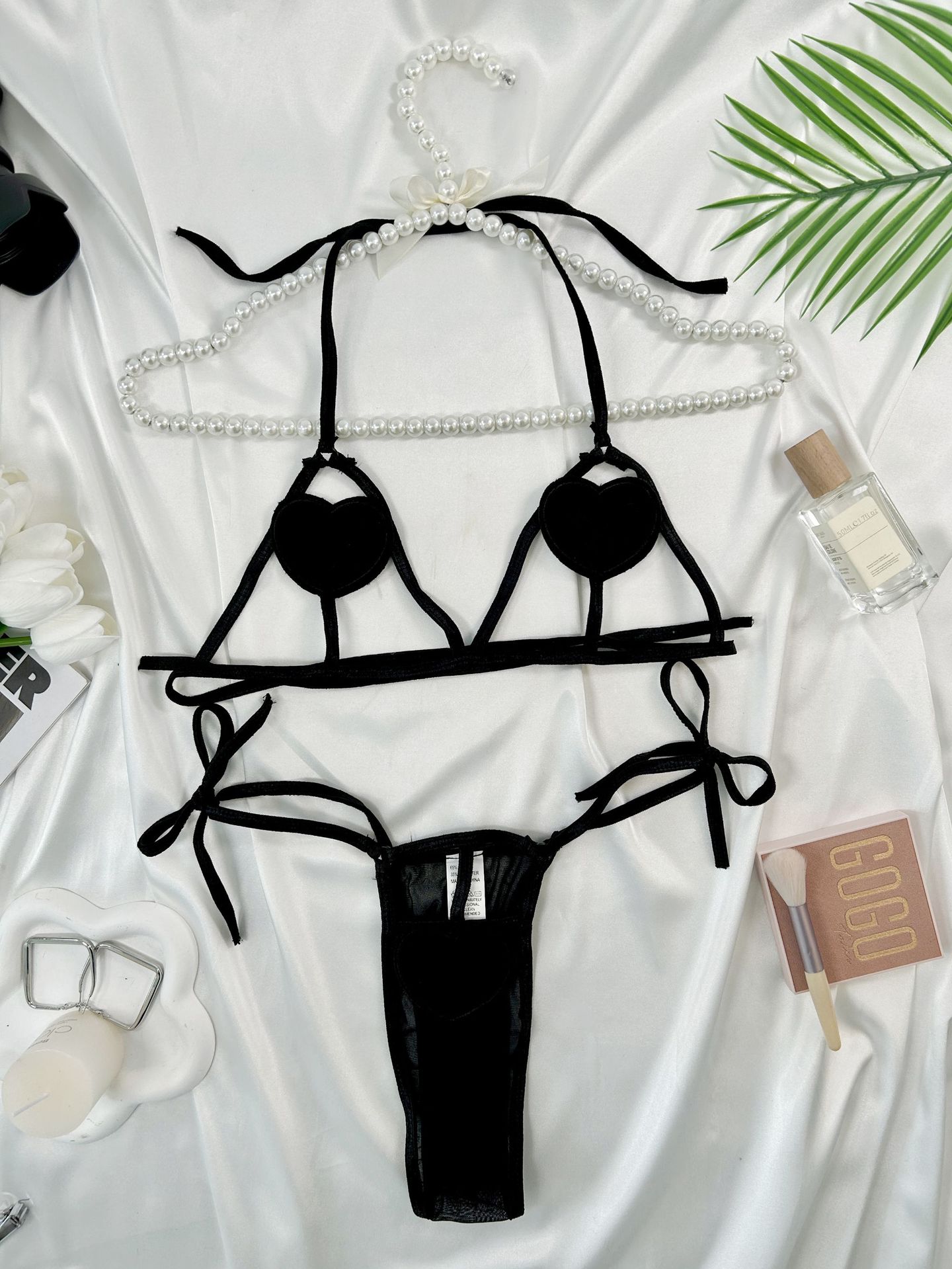 Lencería sexy para mujer, conjunto de lencería de tres piezas con forma de corazón, seductora con cordones, conjunto sexy interactivo para parejas, encaje sexy
