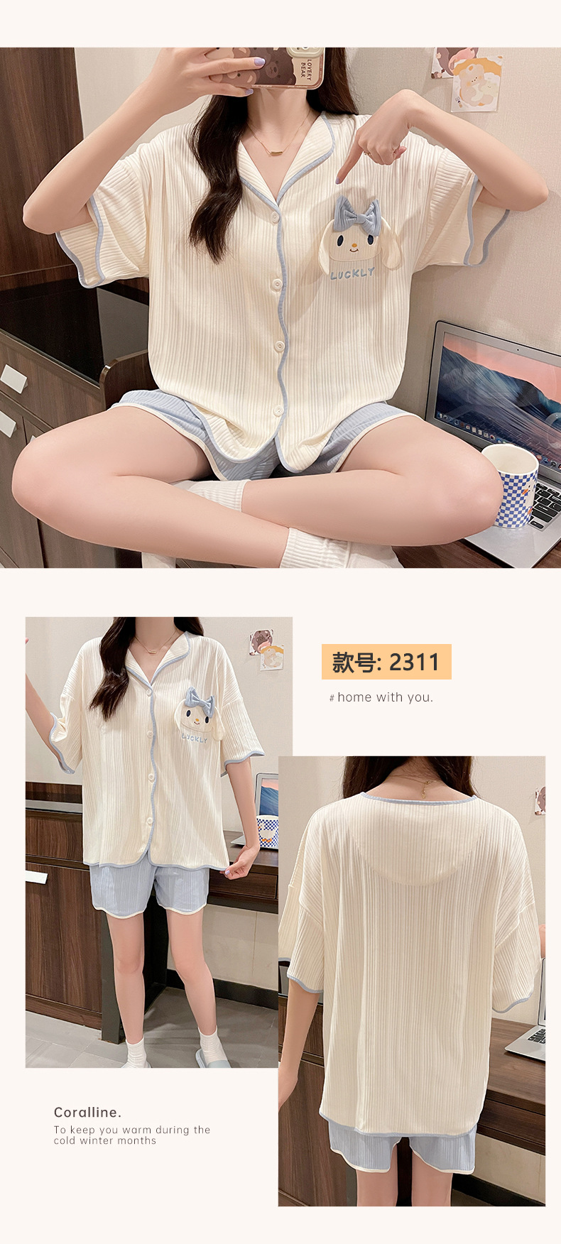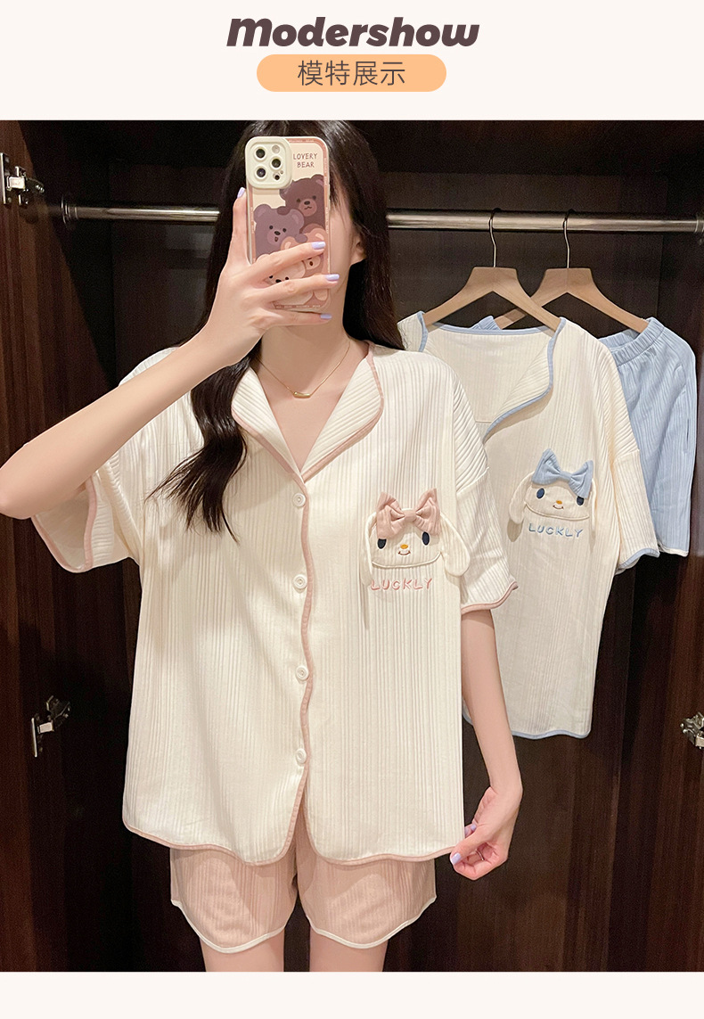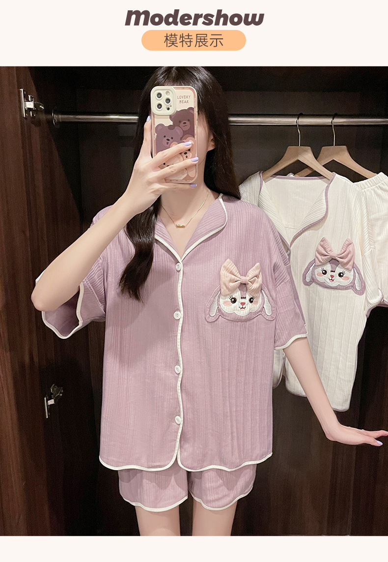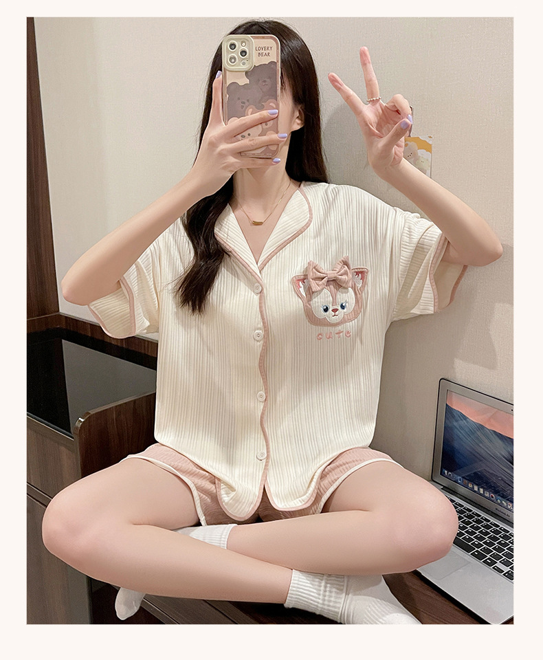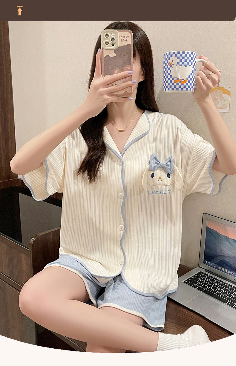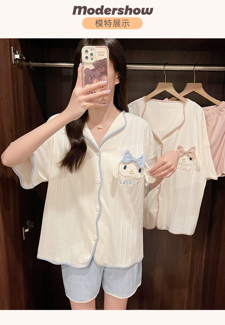 Pijamas de niña linda pantalones cortos de manga corta de verano estilo coreano ins ropa de casa de dos piezas mujer WeChat celebridad en línea entrega en vivo