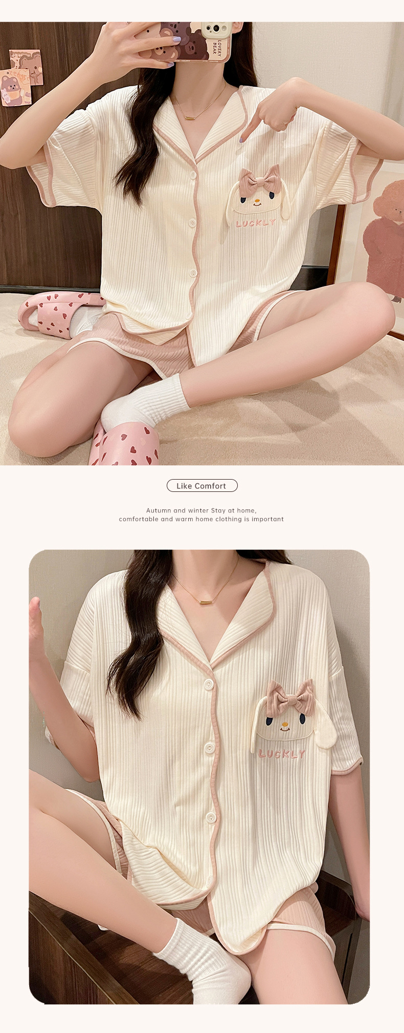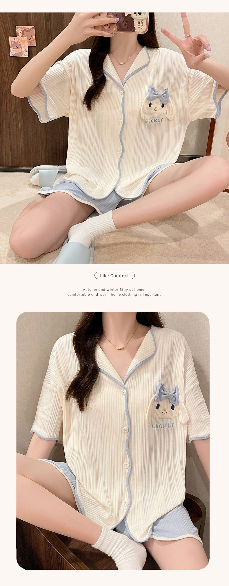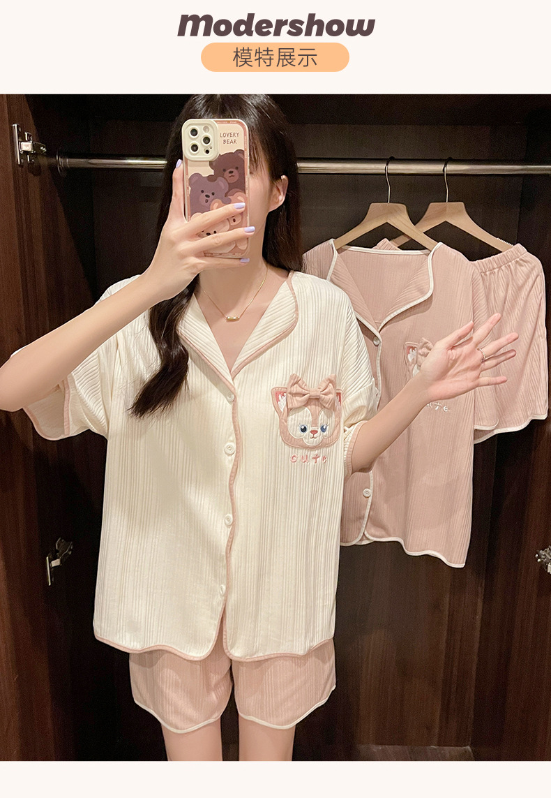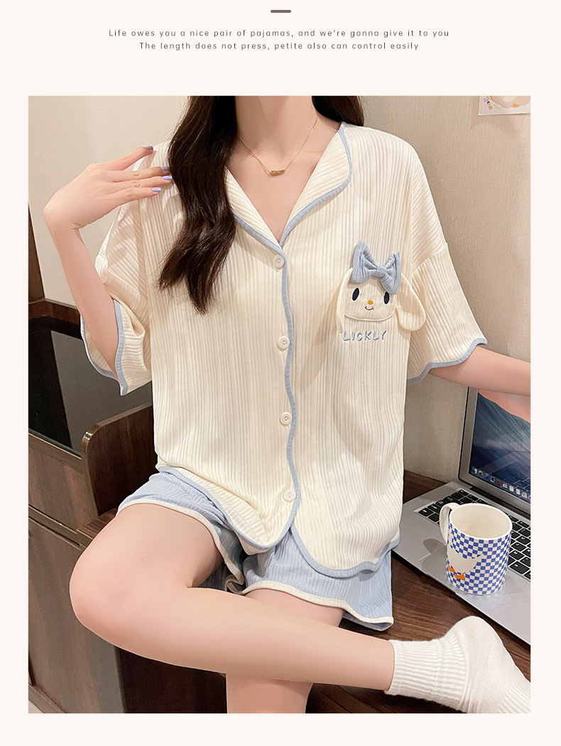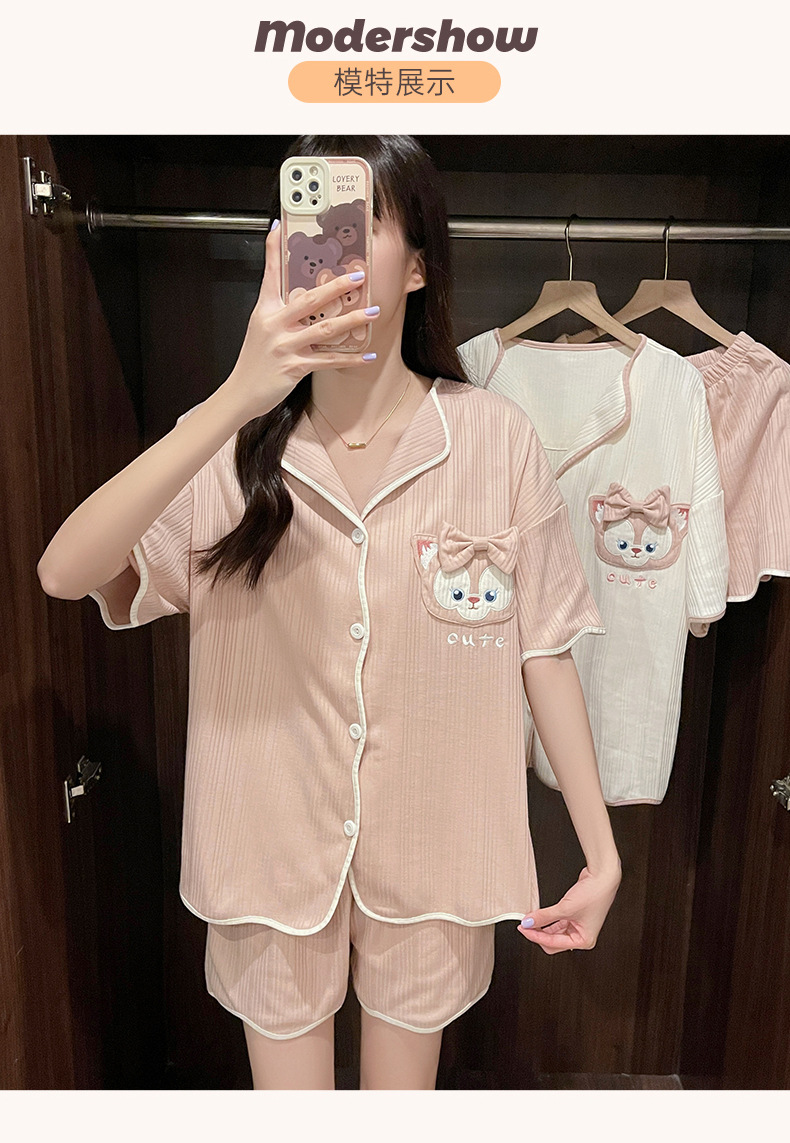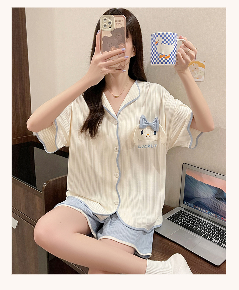 Pijamas de niña linda pantalones cortos de manga corta de verano estilo coreano ins ropa de casa de dos piezas mujer WeChat celebridad en línea entrega en vivo