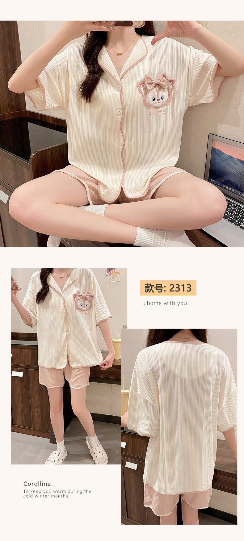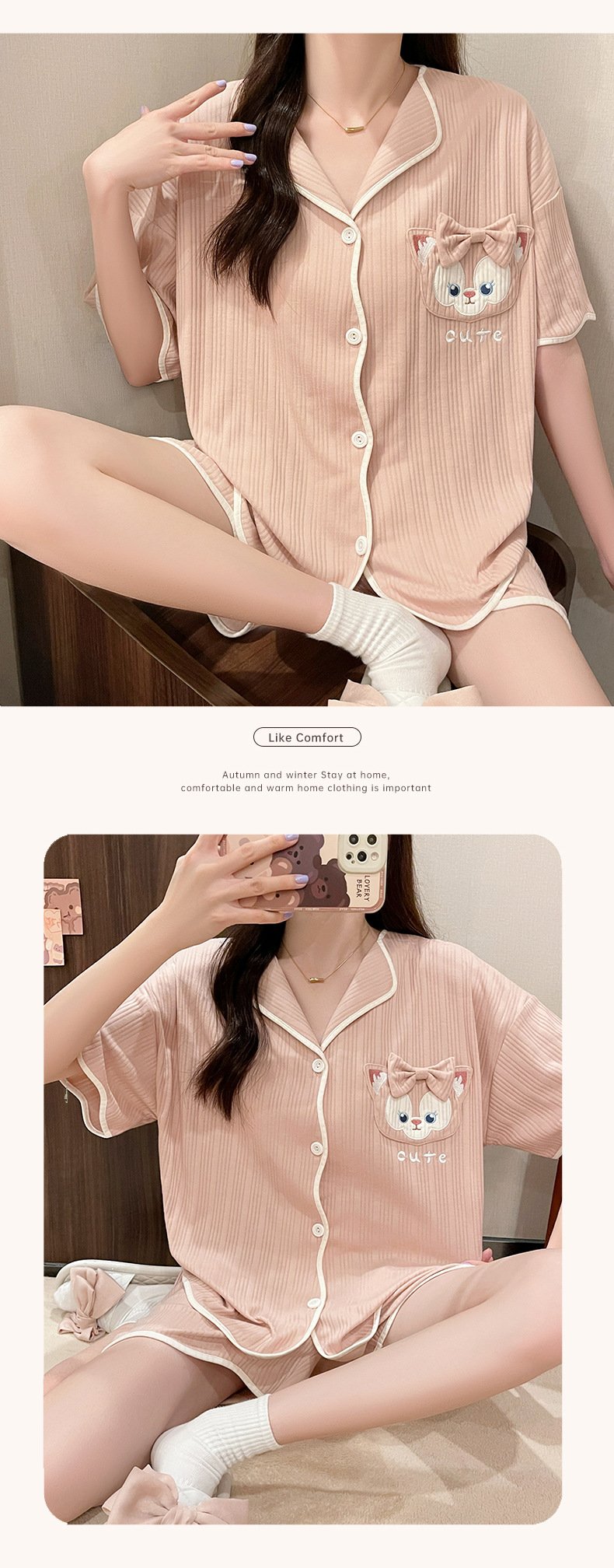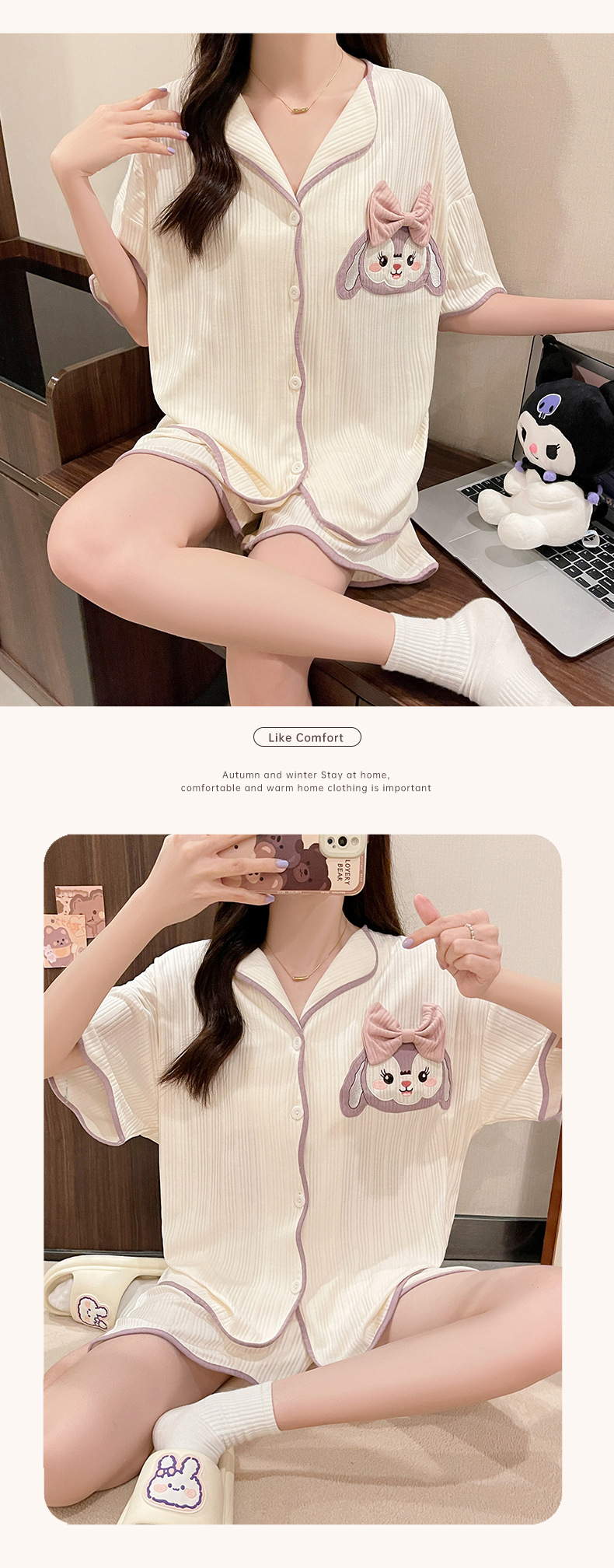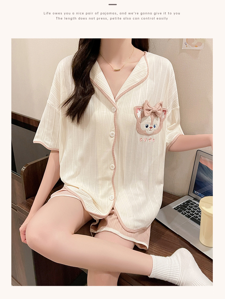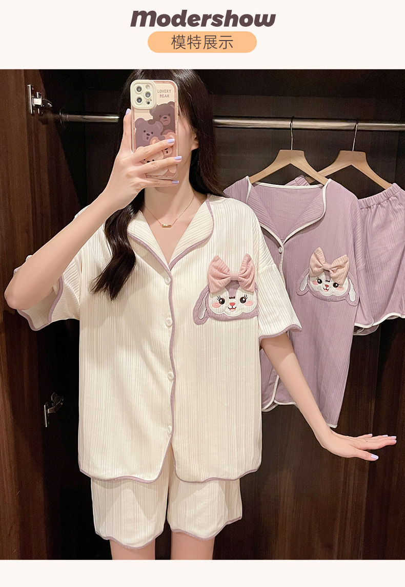 Pijamas de niña linda pantalones cortos de manga corta de verano estilo coreano ins ropa de casa de dos piezas mujer WeChat celebridad en línea entrega en vivo