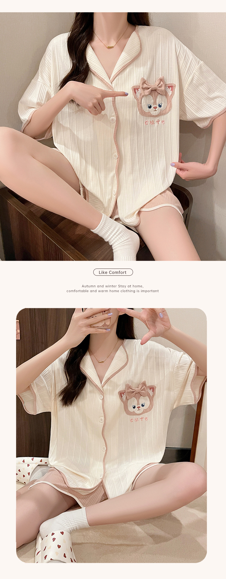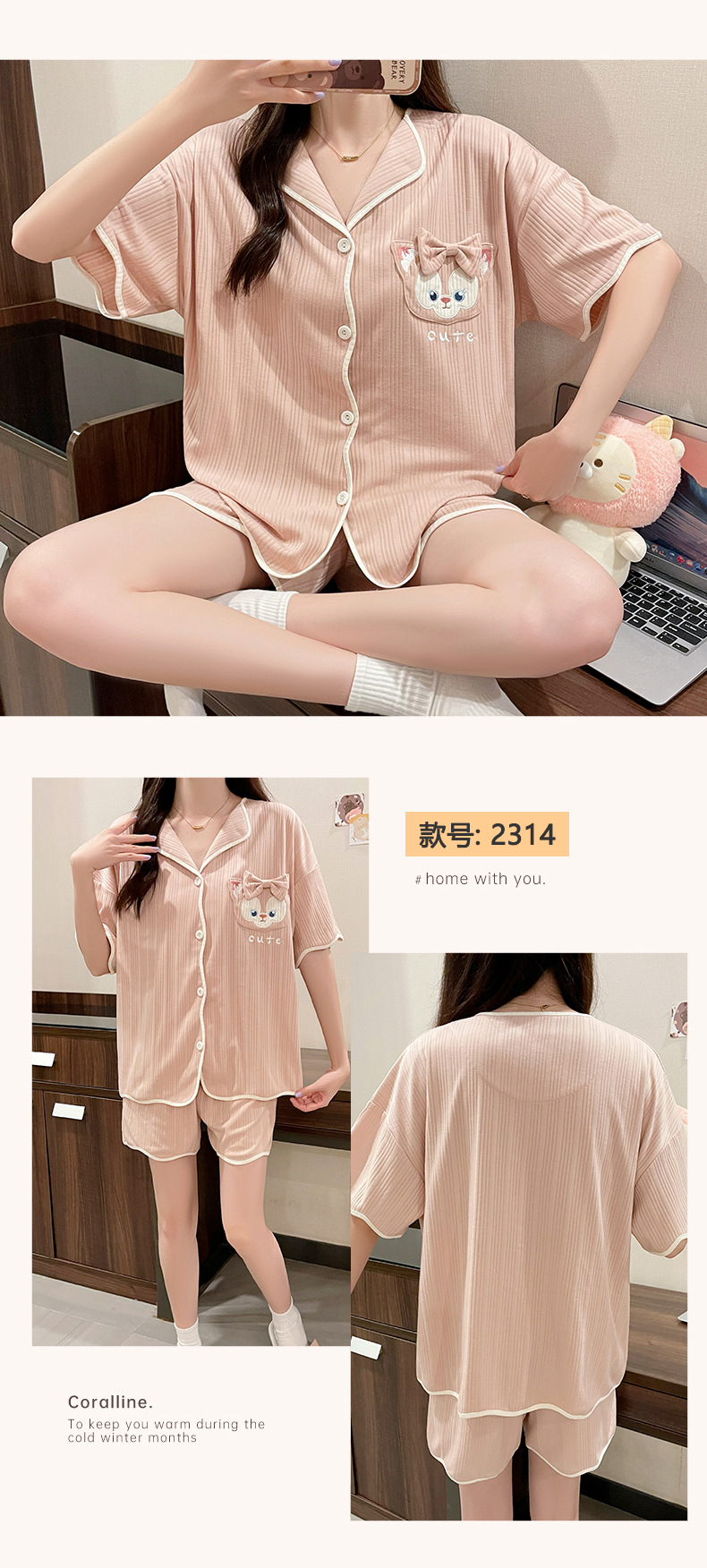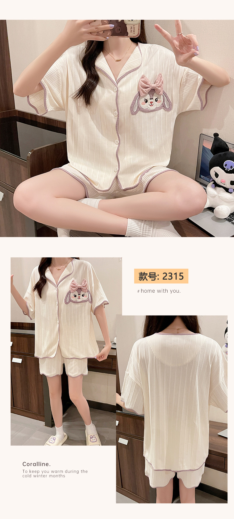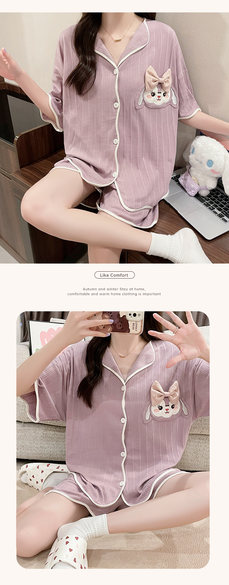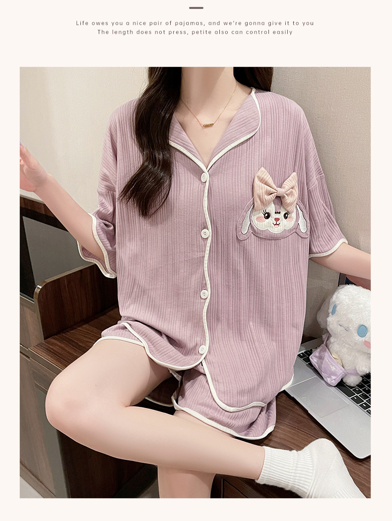 Pijamas de niña linda pantalones cortos de manga corta de verano estilo coreano ins ropa de casa de dos piezas mujer WeChat celebridad en línea entrega en vivo