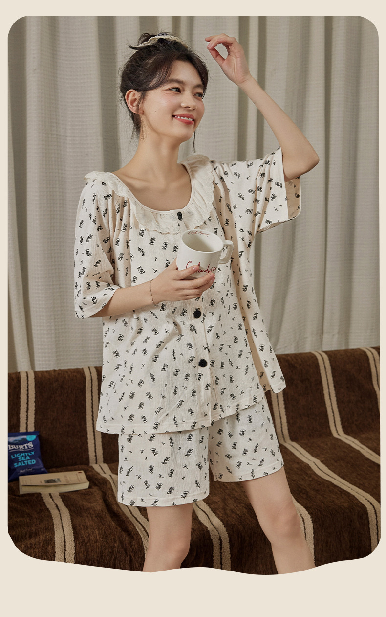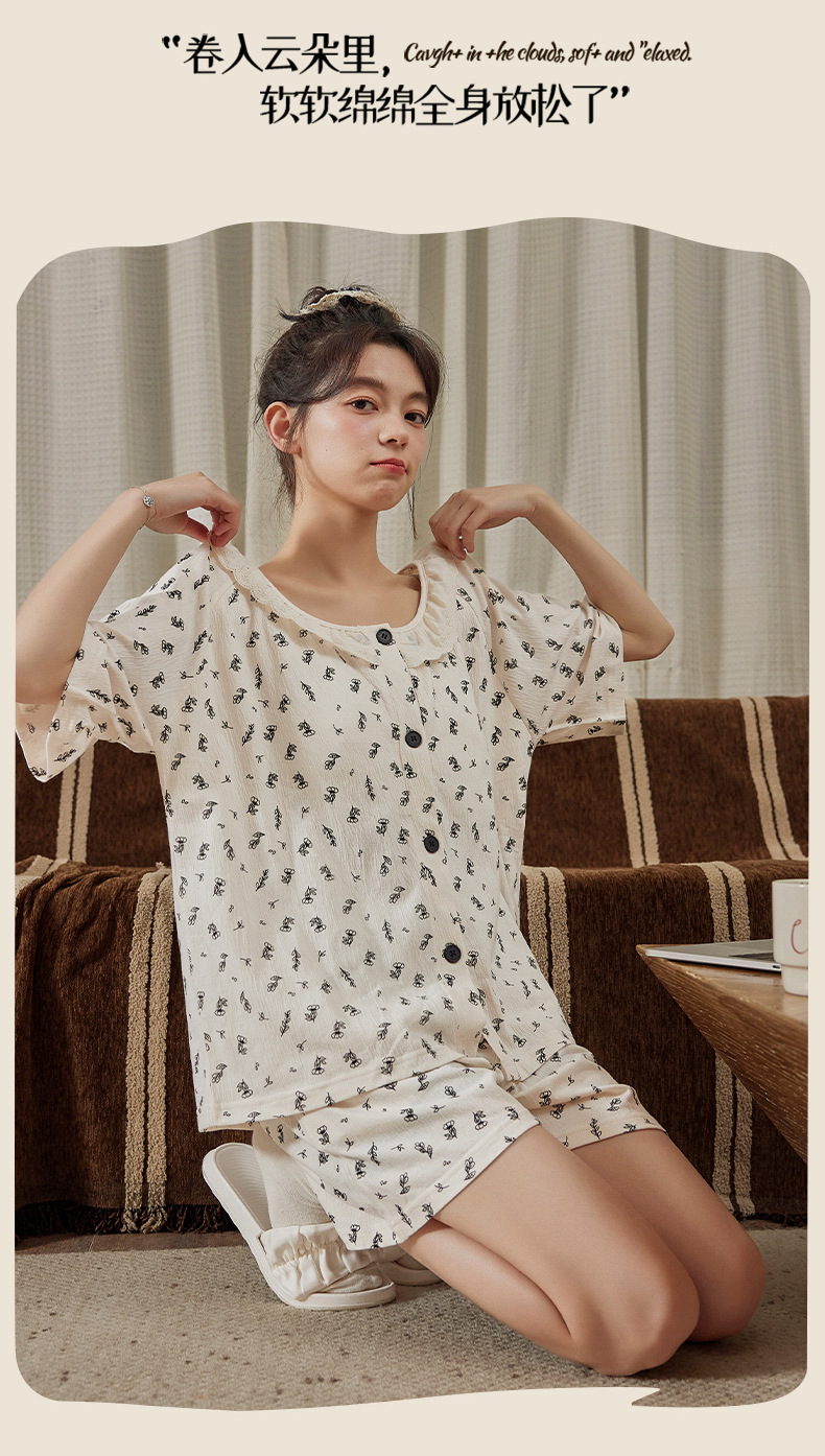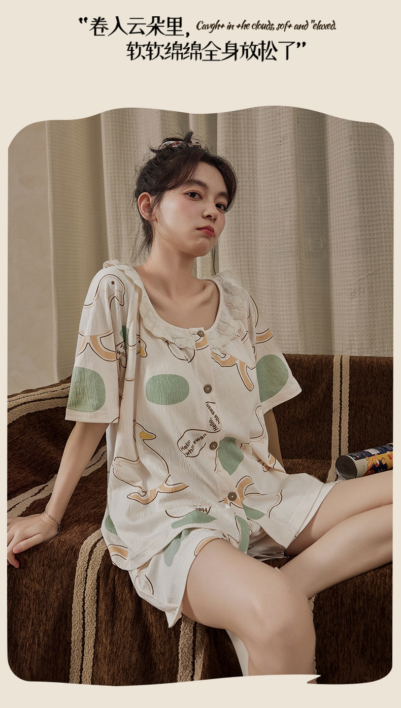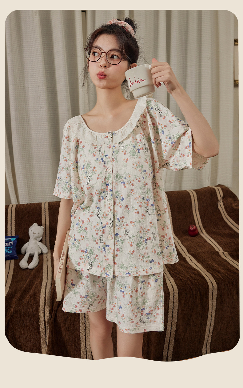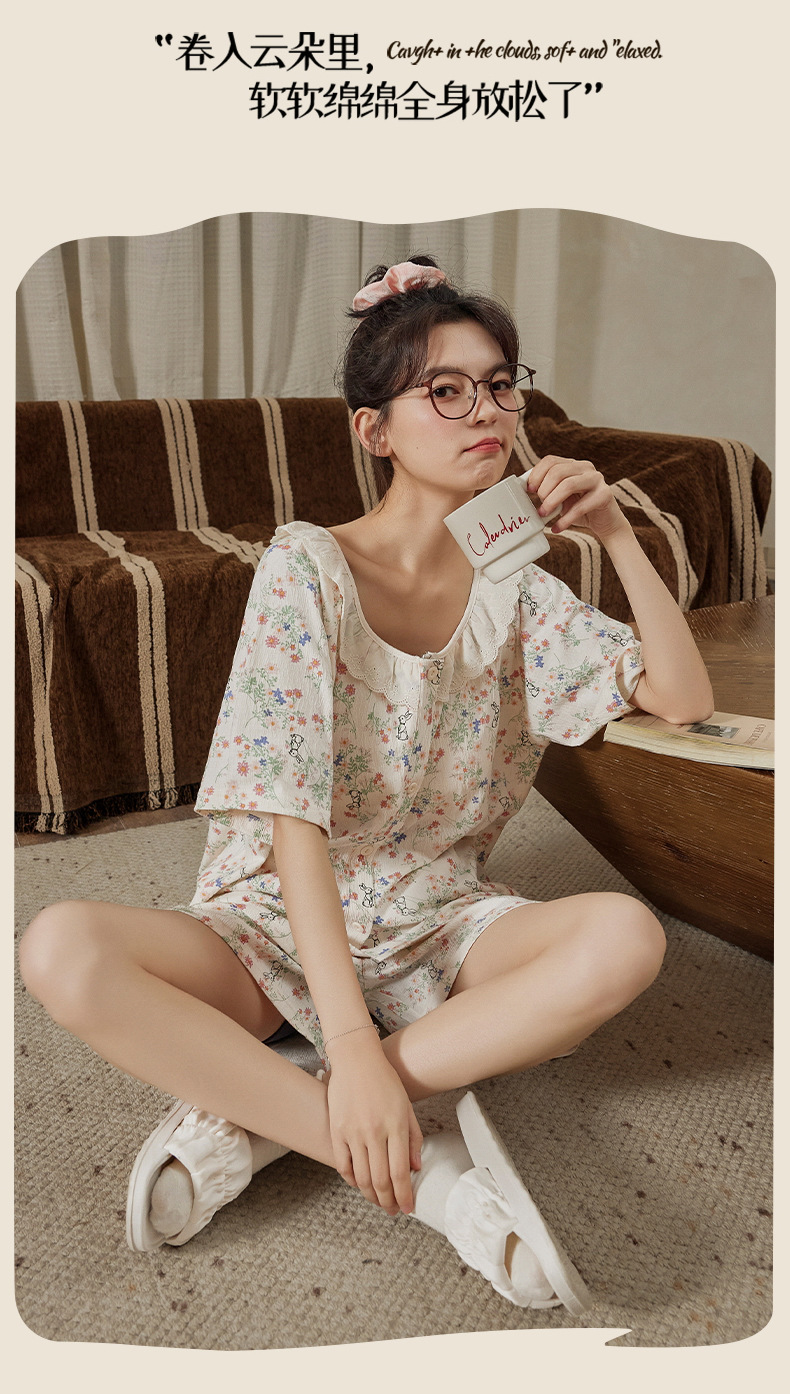 Xiaoxiangfeng pijamas con almohadilla para el pecho para mujer rebeca delgada de verano pantalones cortos de manga corta celebridades de Internet servicio a domicilio suelto dulce y lindo