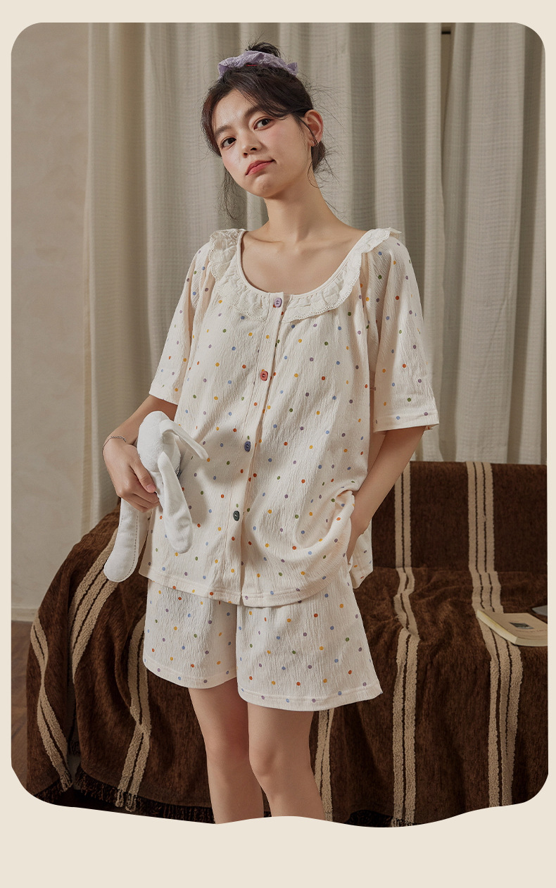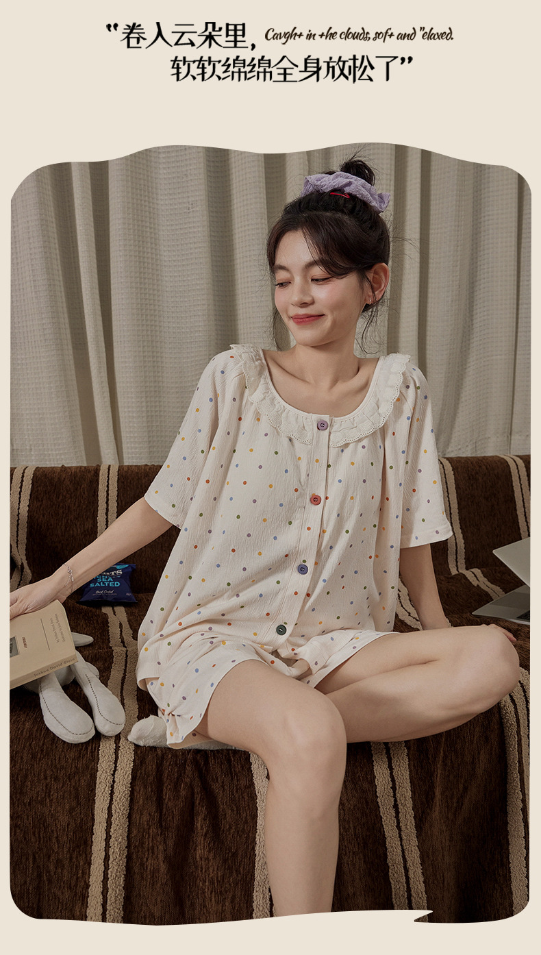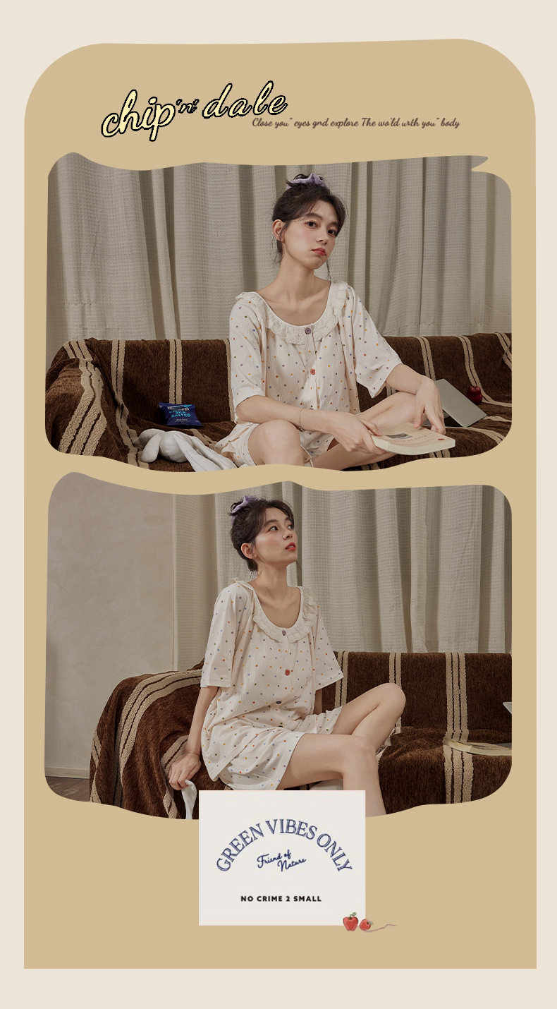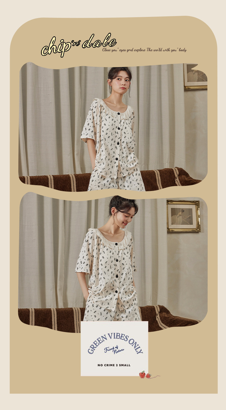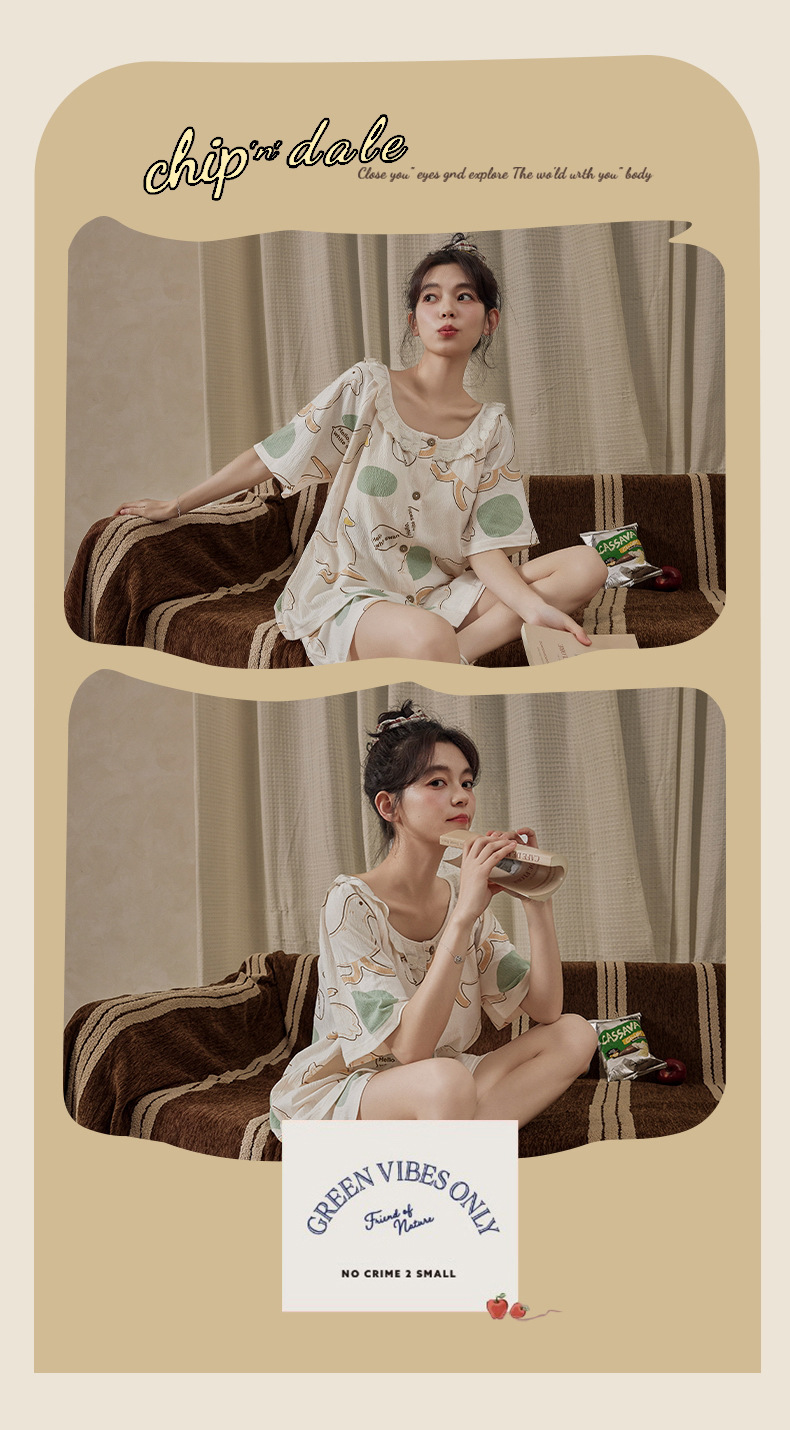 Xiaoxiangfeng pijamas con almohadilla para el pecho para mujer rebeca delgada de verano pantalones cortos de manga corta celebridades de Internet servicio a domicilio suelto dulce y lindo