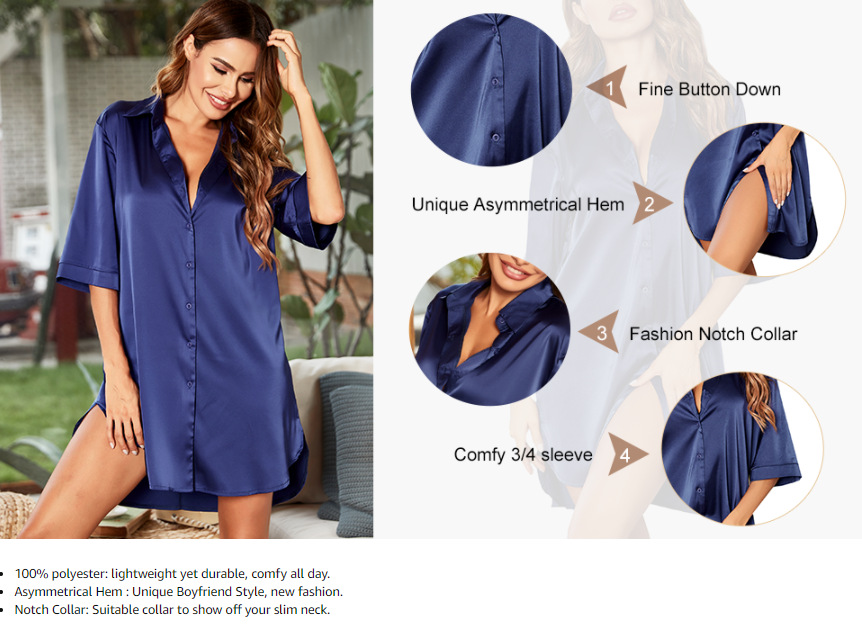 Verano sexy dulce delgada estilo novio Camisa larga homewear primavera y otoño pijamas privados