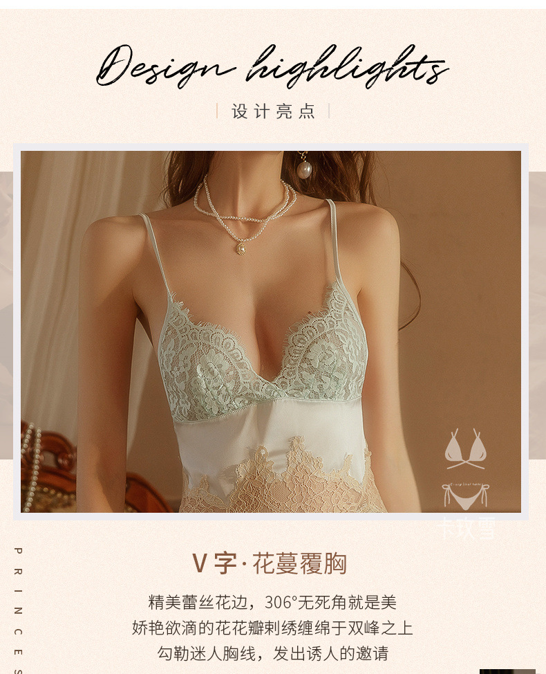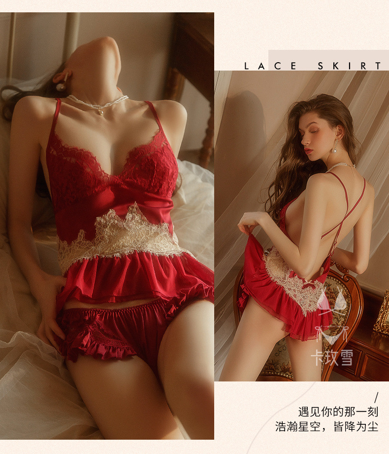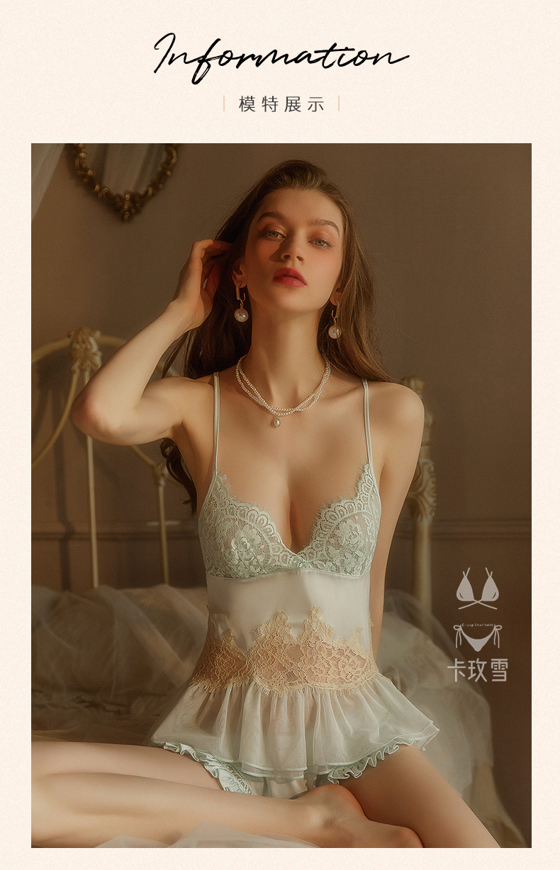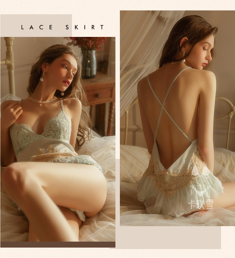 Lencería sexy pijamas de las mujeres de dos piezas pantalones cortos Correa camisón encaje sin espalda traje de verano casa 1525