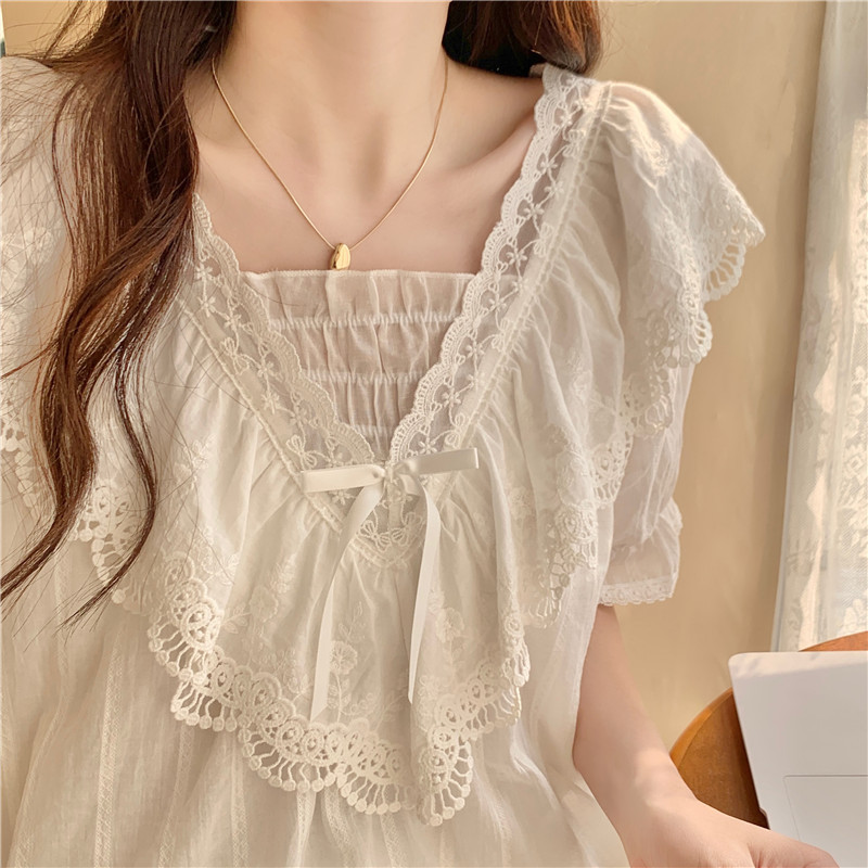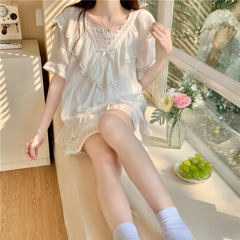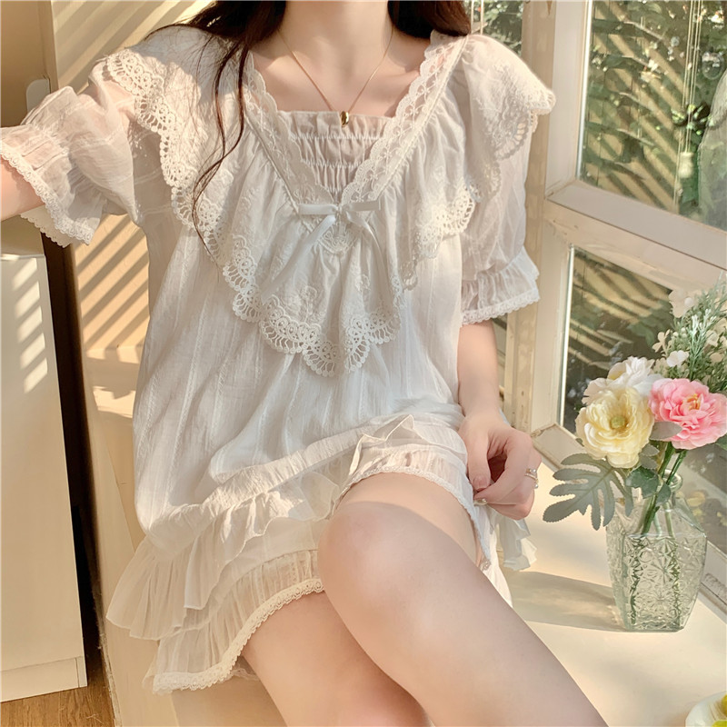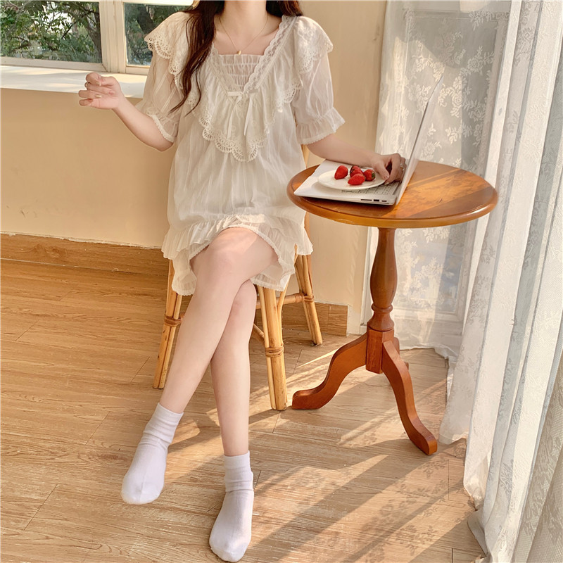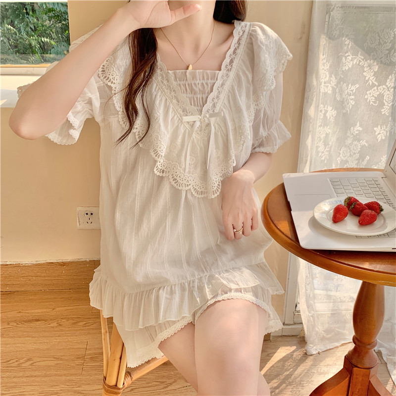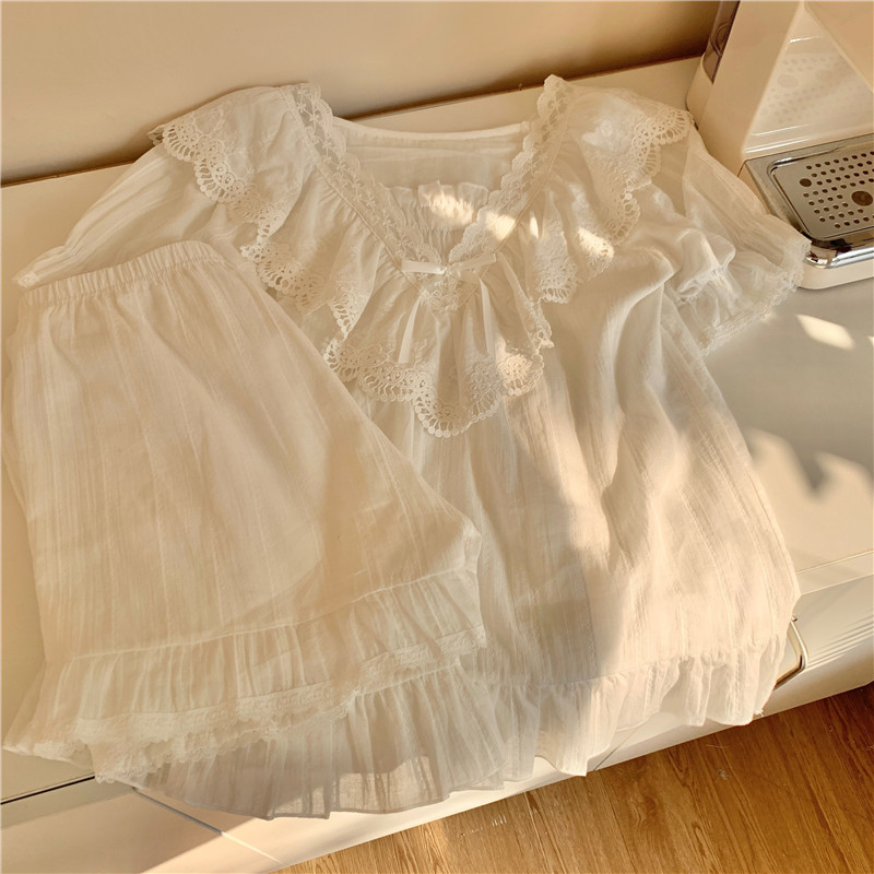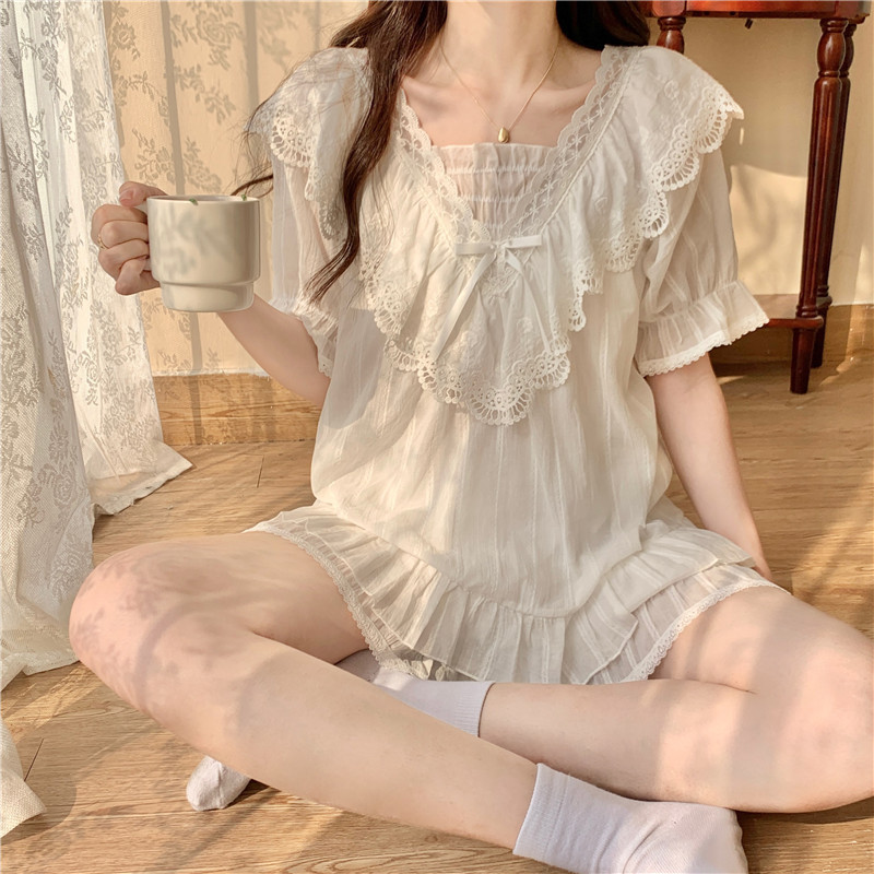 Corea del Sur ins verano de las mujeres nuevo estilo corte retro francés con volantes manga corta Home wear pijamas traje