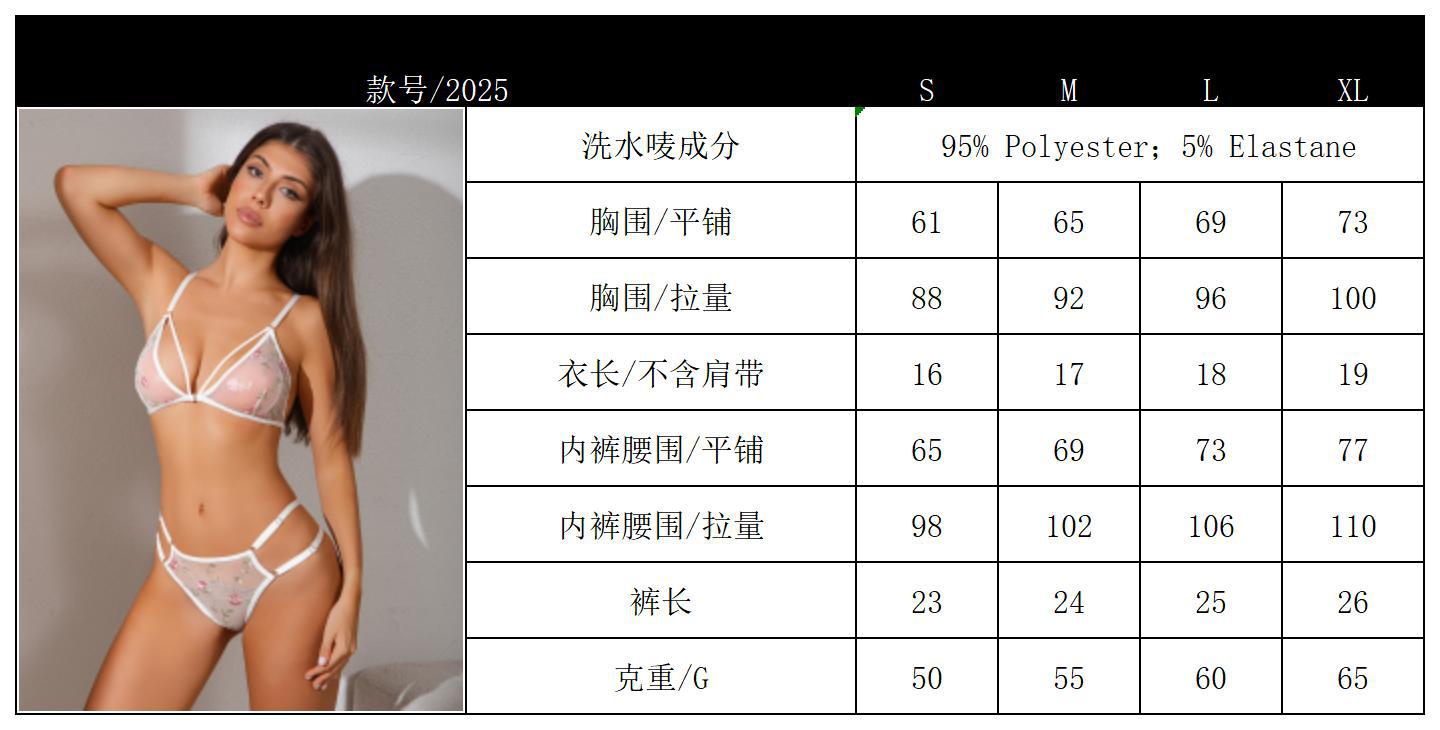 Comercio exterior transfronterizo caliente sexy de tres puntos bordado flor sujetador ropa interior traje dividido lencería sexy 2025