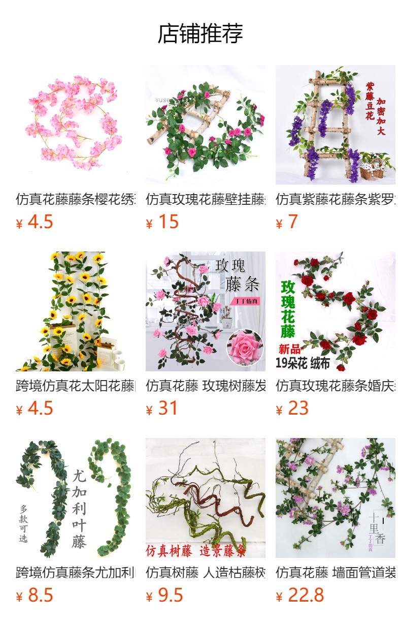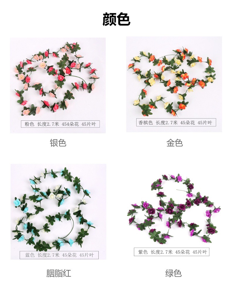 Enredadera de rosas artificiales con 45 cabezas - Decoraciones florales artificiales para bodas, enredaderas de flores de seda y vegetación sintética