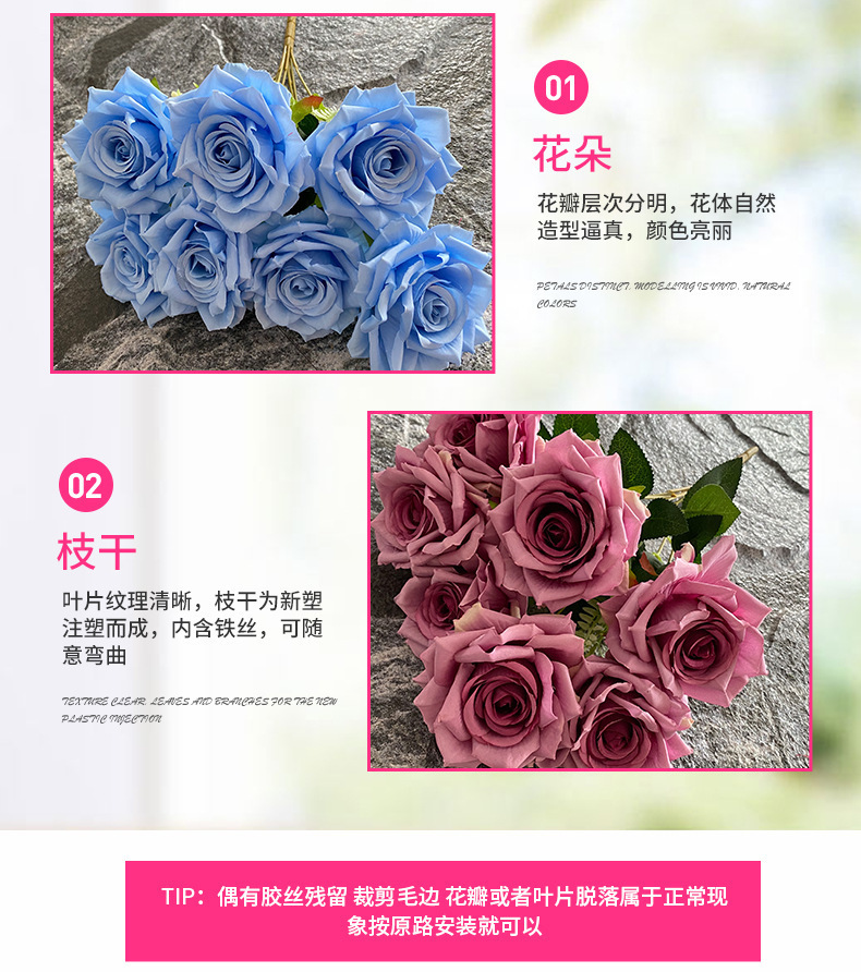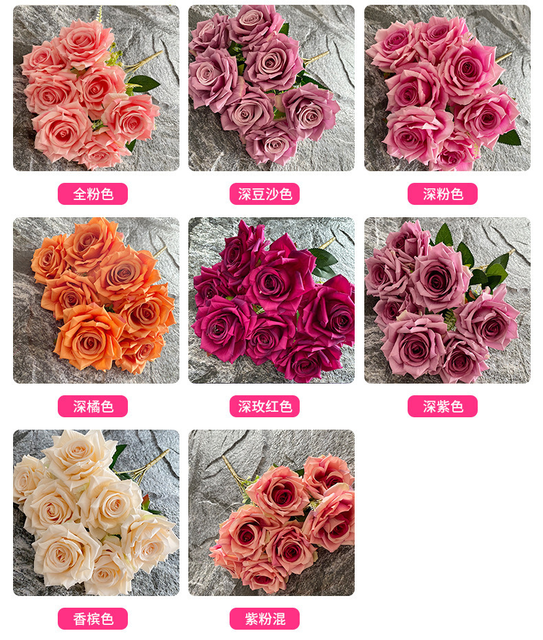 7-cabeza amante gran cuerno Rosa manejar manojo Boda boda decoración del hogar artificial flor falsa foto apoyos Rosa ramo
