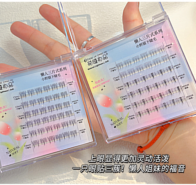 Pestañas lindas cuidadosamente seleccionadas, pestañas inferiores de tallo ancho perezoso, pestañas inferiores naturales de un solo grupo, pestañas de Barbie sin maquillaje para principiantes