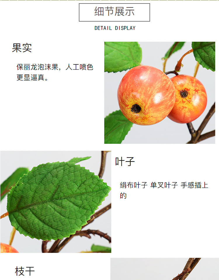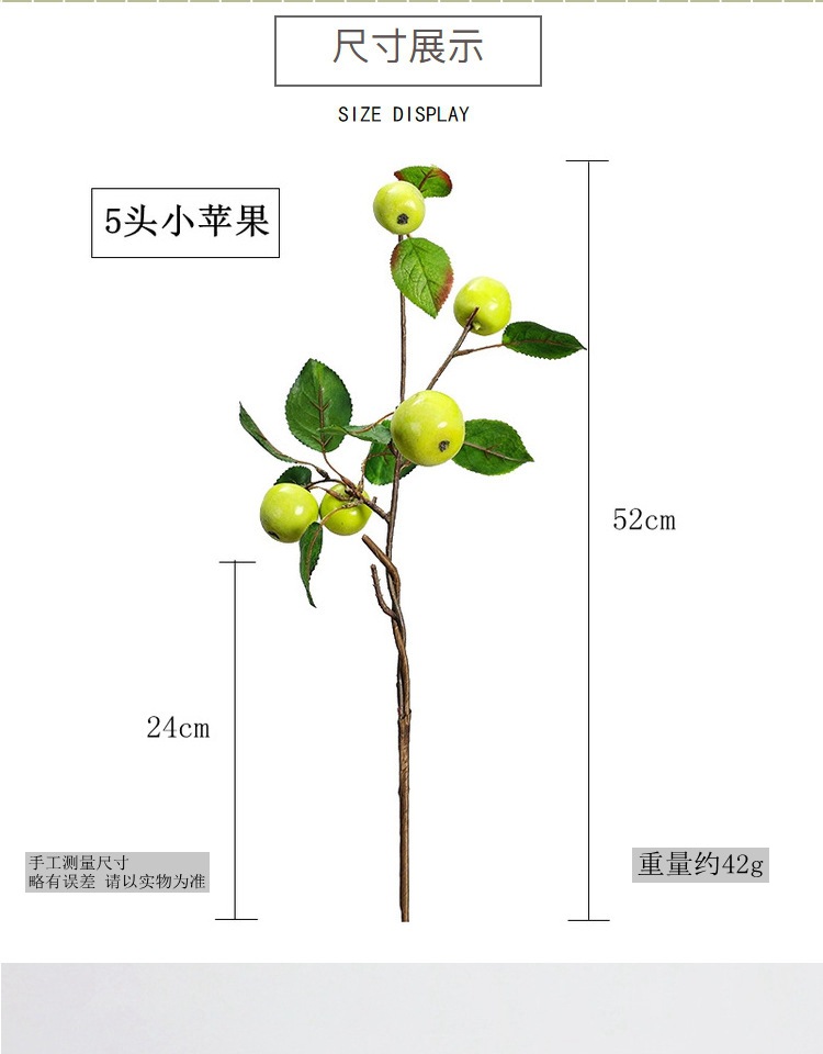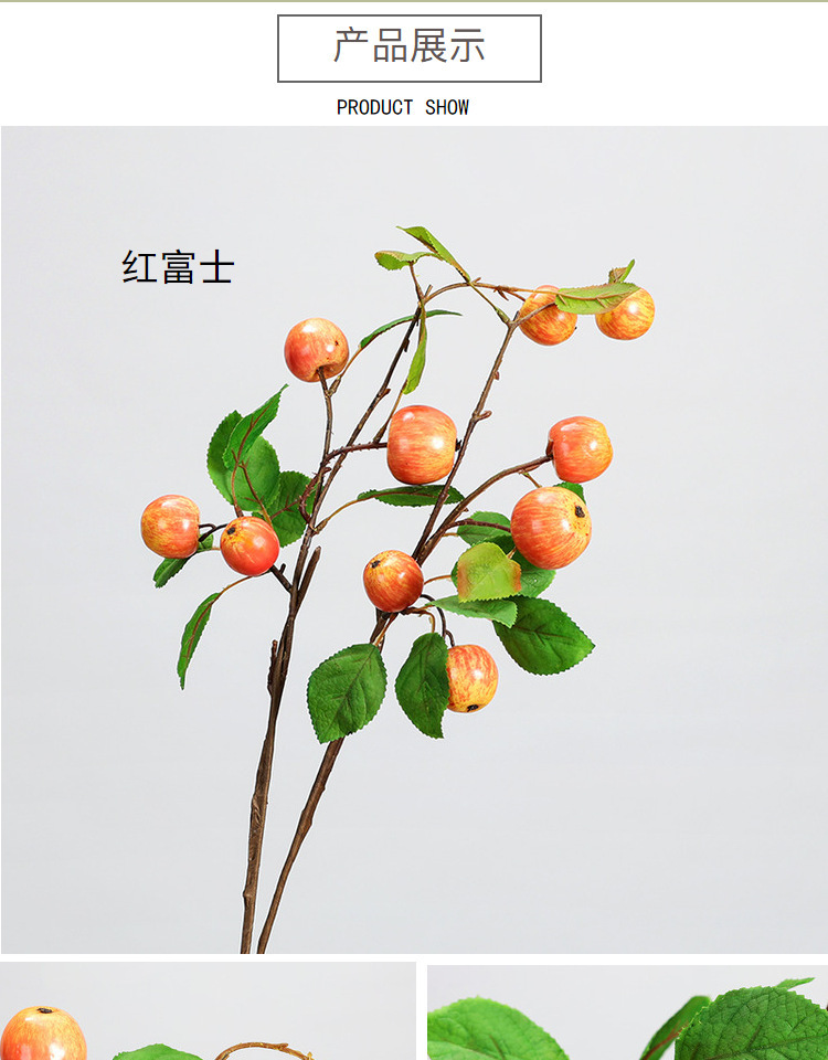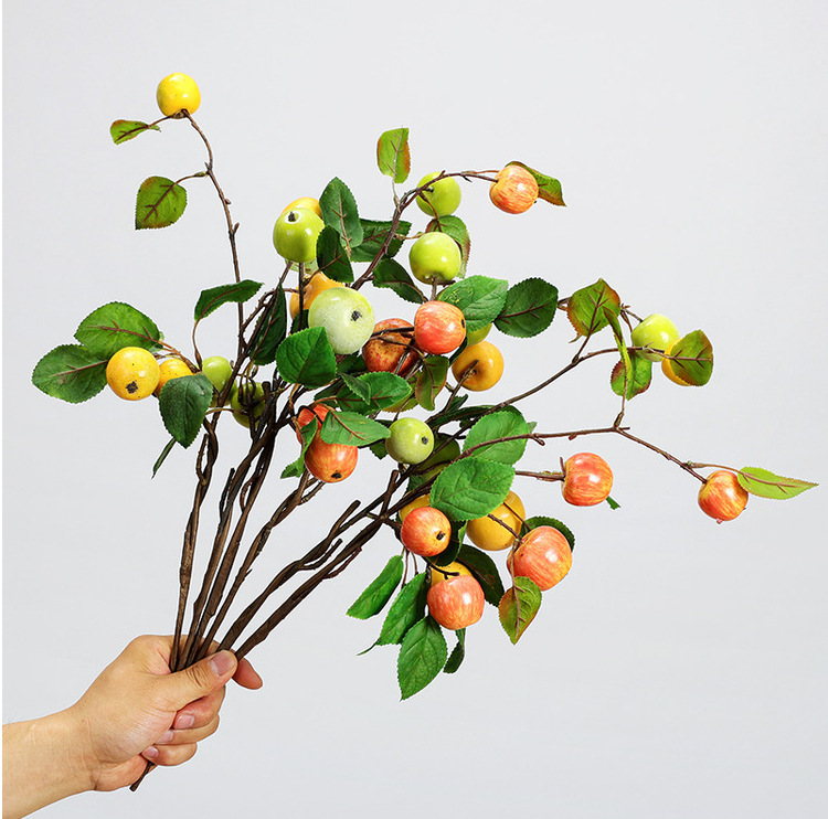 Sensación DE LA MANO alta simulación ramas de manzana pequeña con hojas de frutas decoración de escritorio flor artificial significado seguro fruta muebles para el hogar