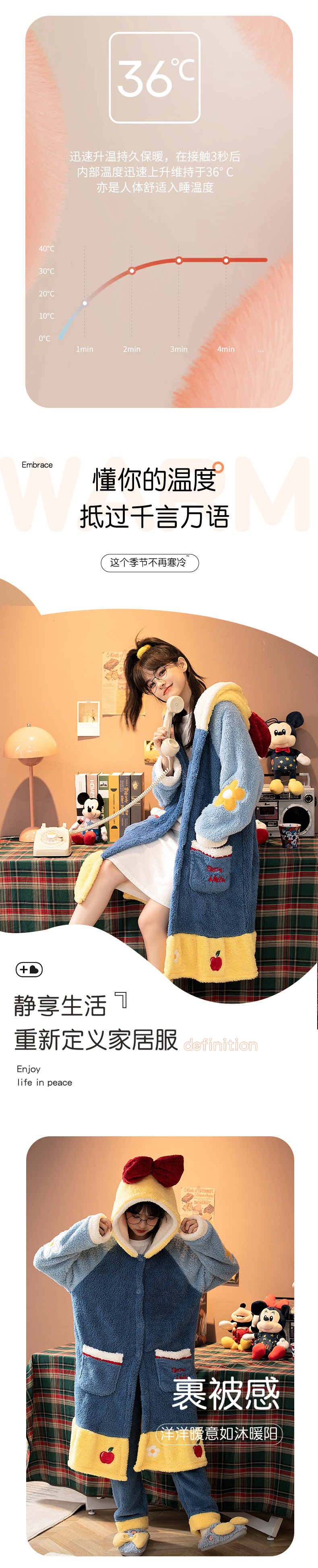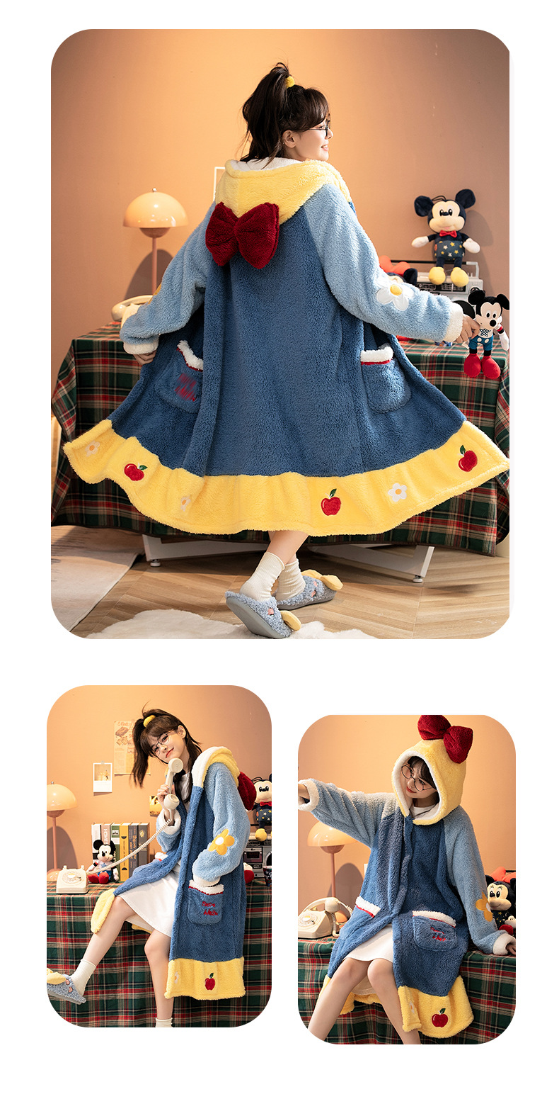 Otoño e Invierno de coral de lana de dibujos animados camisón para las mujeres forrado de lana engrosada homewear camisón franela nieve blanca pijamas traje