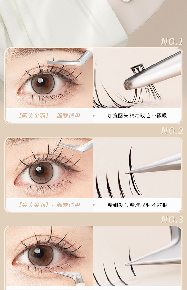 Pinzas de pestañas falsas pinzas de pestañas de injerto pinzas de pestañas de floración clip de plumas de oro rizador de pestañas belleza fábrica en stock