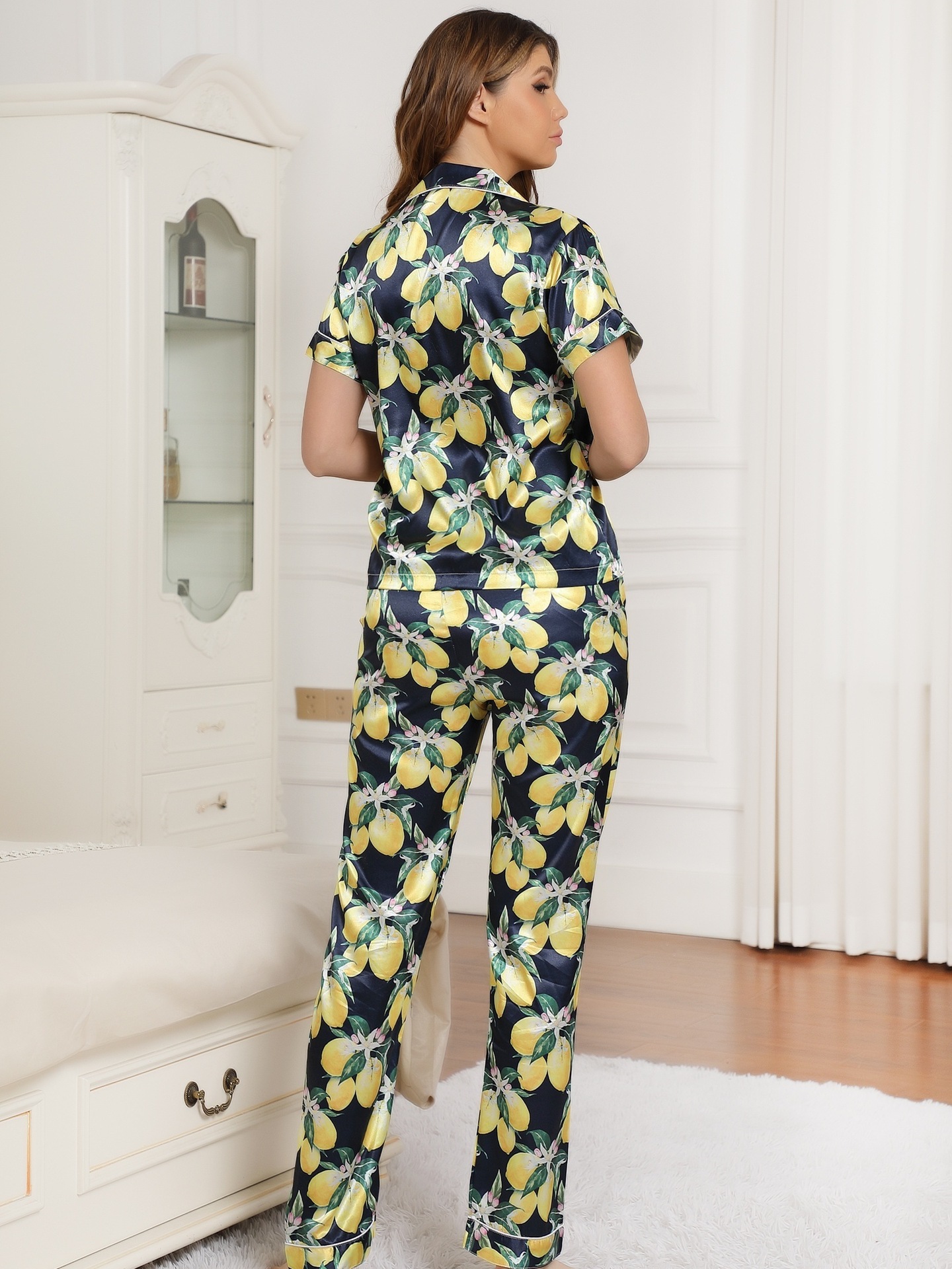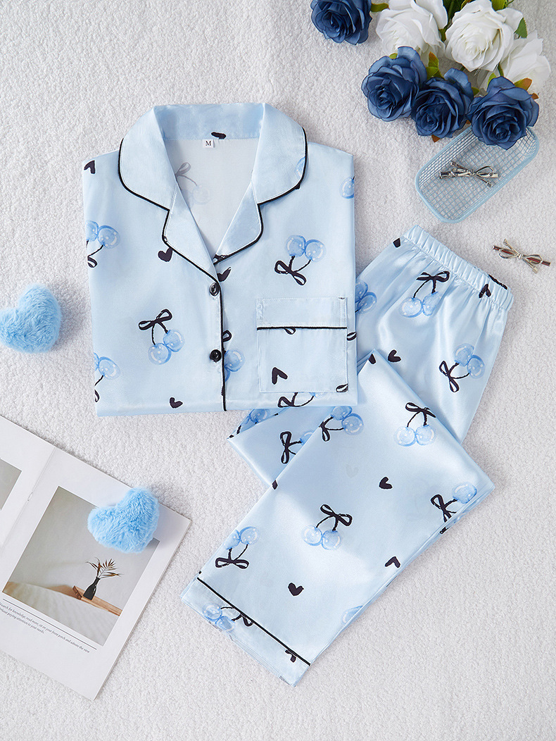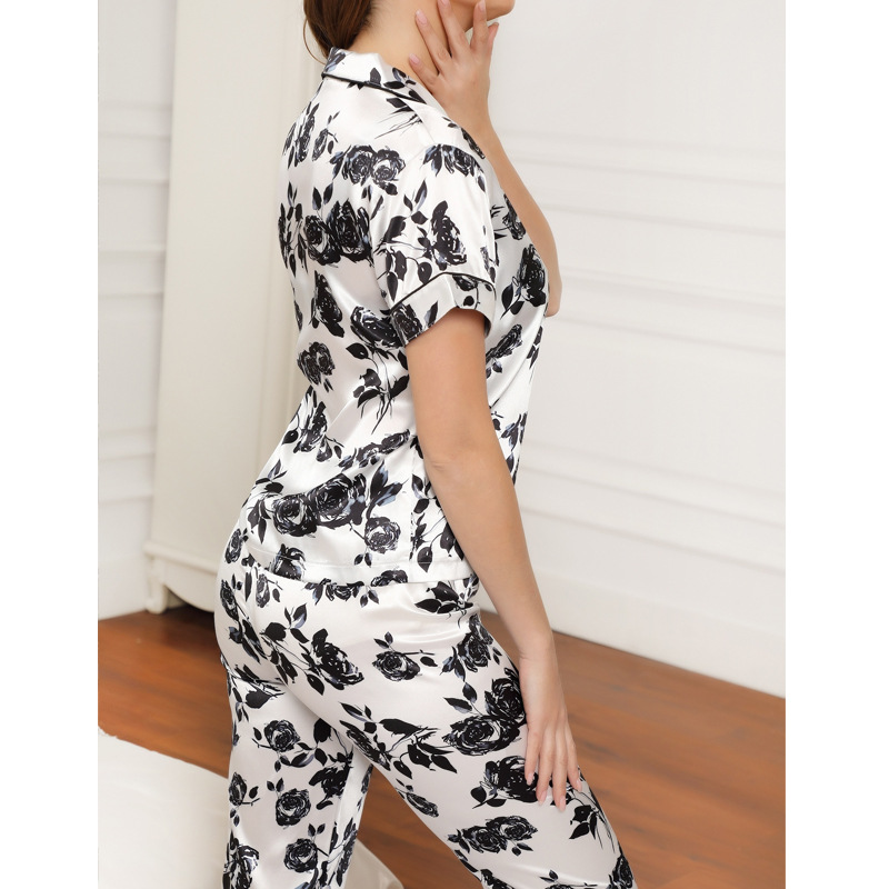 Pijamas de satén ropa para el hogar Amazon ropa de mujer europea y americana seda artificial pijamas de manga corta para mujer ropa de aire acondicionado de verano