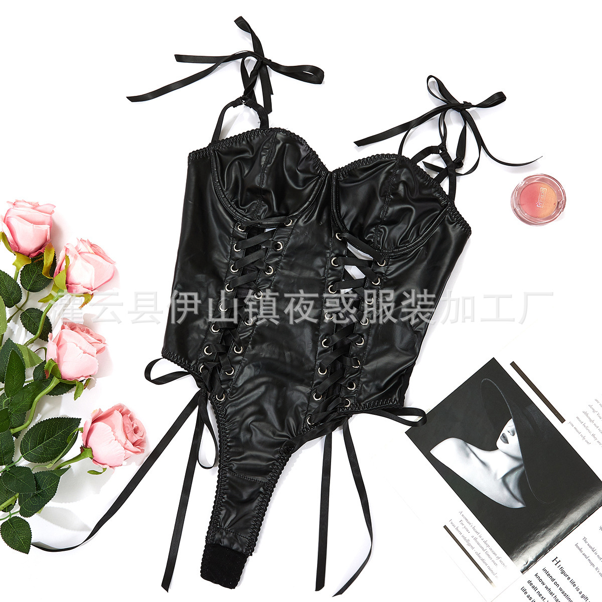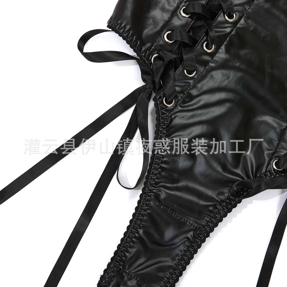 Nueva Europa y América transfronteriza suministro de cuero de la PU brillante nightclub sexy ropa interior Correa sexy mono traje de charol mujeres