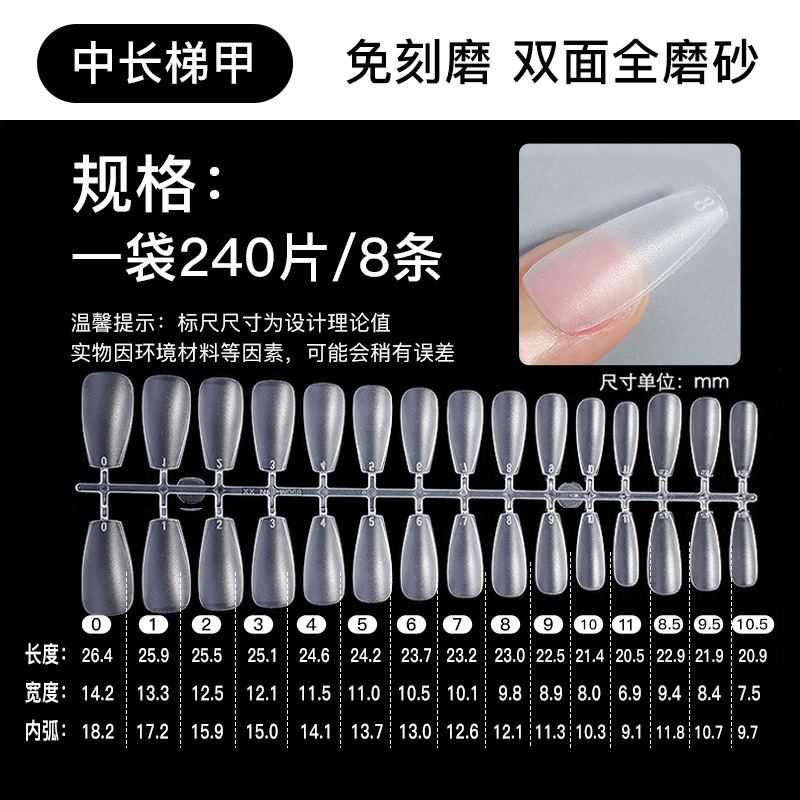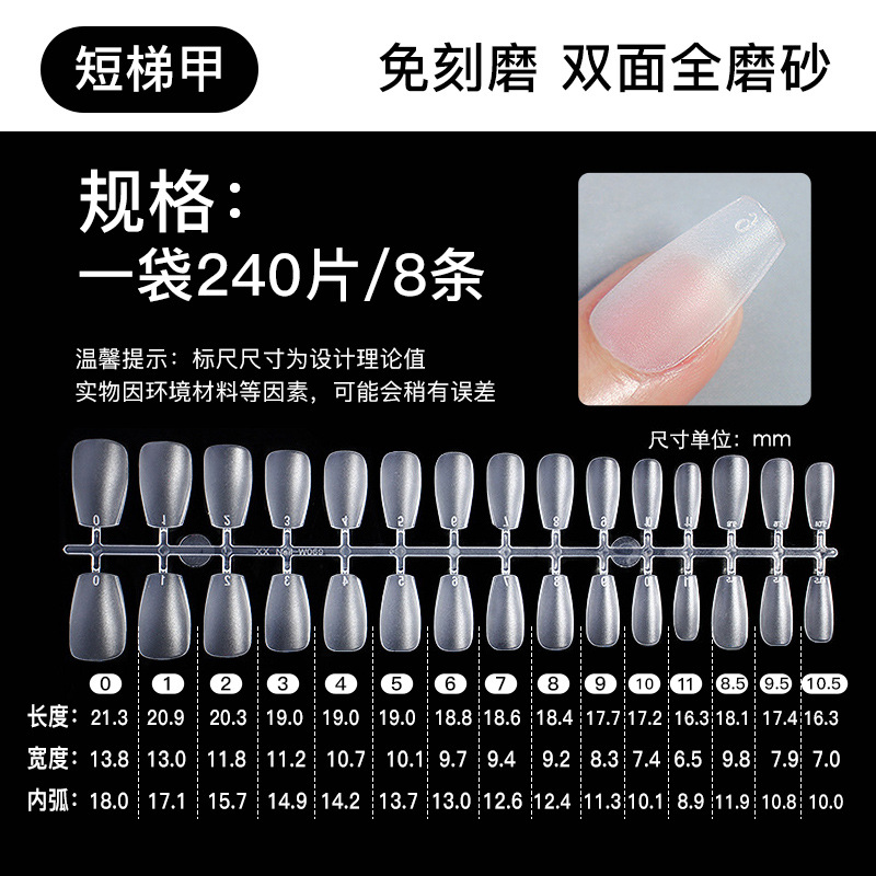 Lindo arte de uñas trapezoidal almendra esmerilado pieza de uñas etiqueta completa sin costuras tallado-libre de molienda de uñas falsas esmerilado transparente de uñas falsas