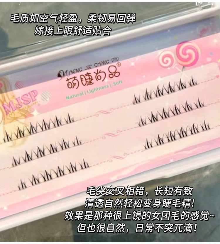 Lindo pestañas Shangpin pequeña llama pestañas naturales diarias solo racimo dividido Barbie Ojo de dibujos animados tallo transparente pestañas postizas