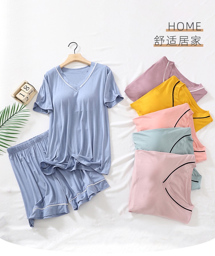 (Con almohadilla en el pecho) Comercio exterior transfronterizo Venta caliente estilo coreano pijamas mujeres V-cuello clásico desgaste en el hogar traje fino desgaste exterior