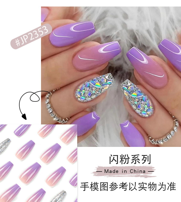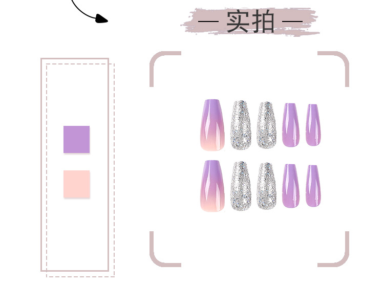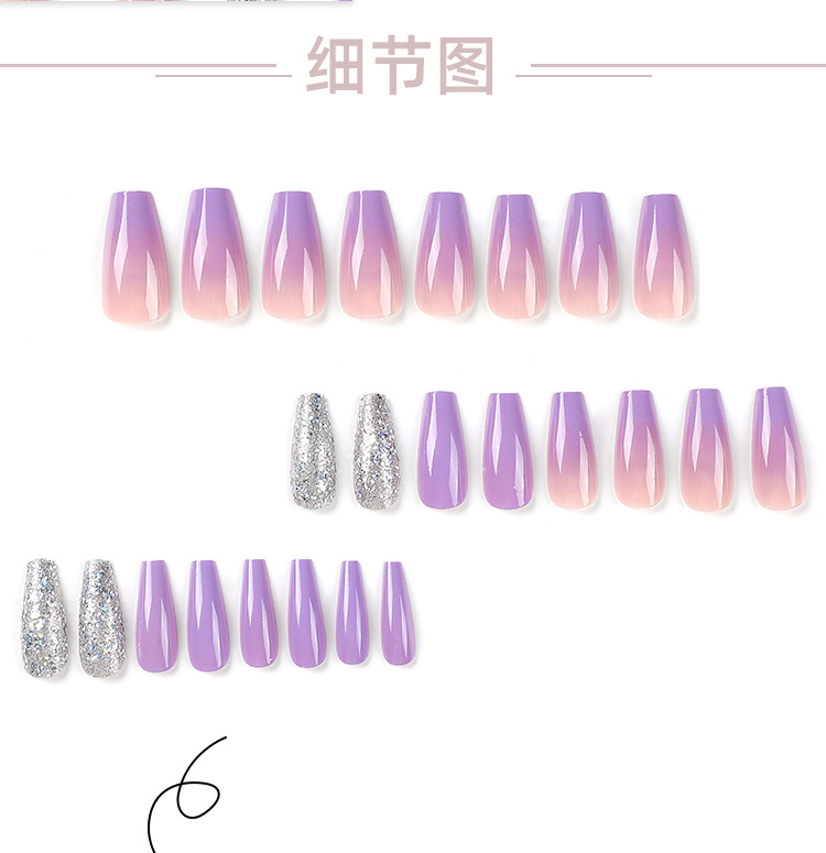Pegatinas de uñas usable Púrpura Gradiente desgaste pieza de uñas terminado lentejuelas de plata uñas falsas extraíble acabado de uñas