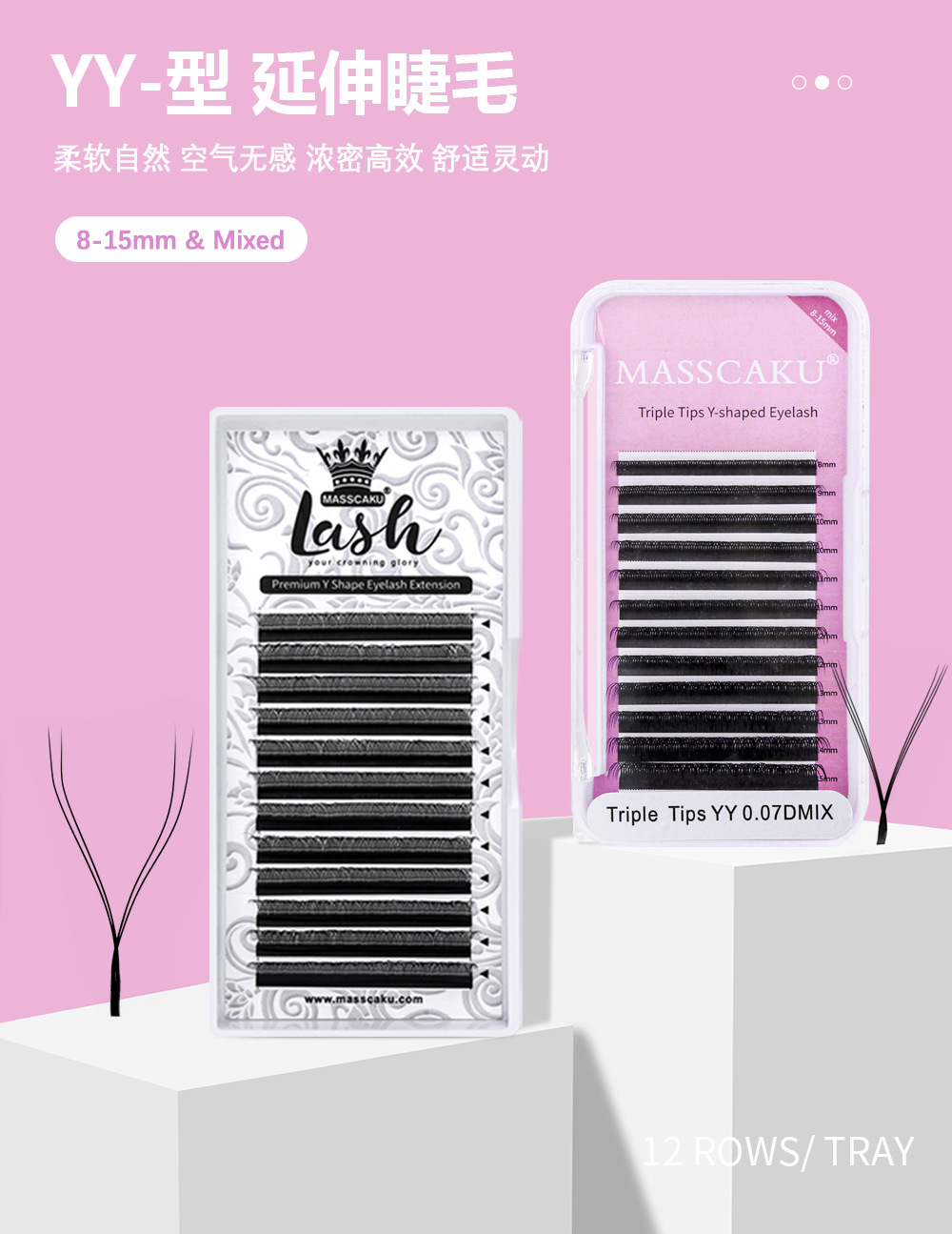 Fábrica al por mayor en stock yy pestañas postizas suaves y cómodas 0,05/0,07 plantación de injerto pestañas en forma de Y