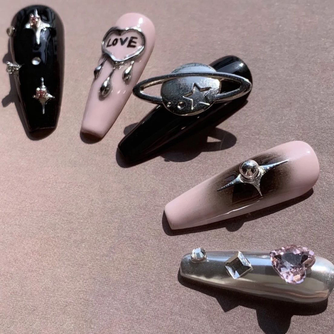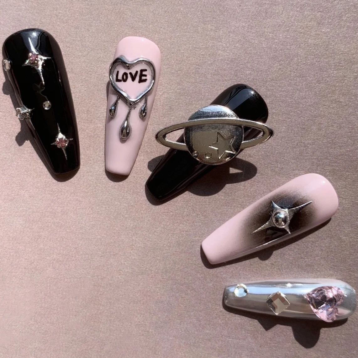 Miss Meow manicura hecha a mano chica caliente planeta corto cuadrado medio escalera parche producto terminado