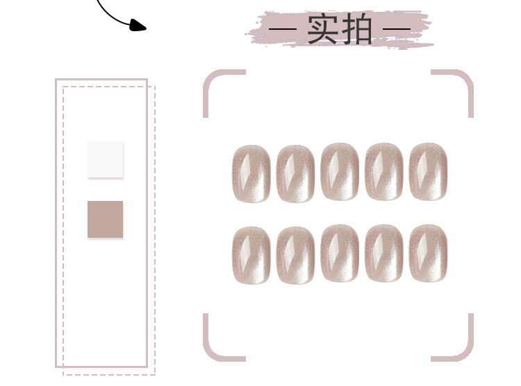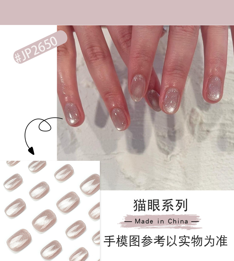 Pegatinas de uñas usable gris ahumado púrpura ojo de gato falso parche de uñas desgaste de uñas cortas uñas falsas manicura de verano al por mayor