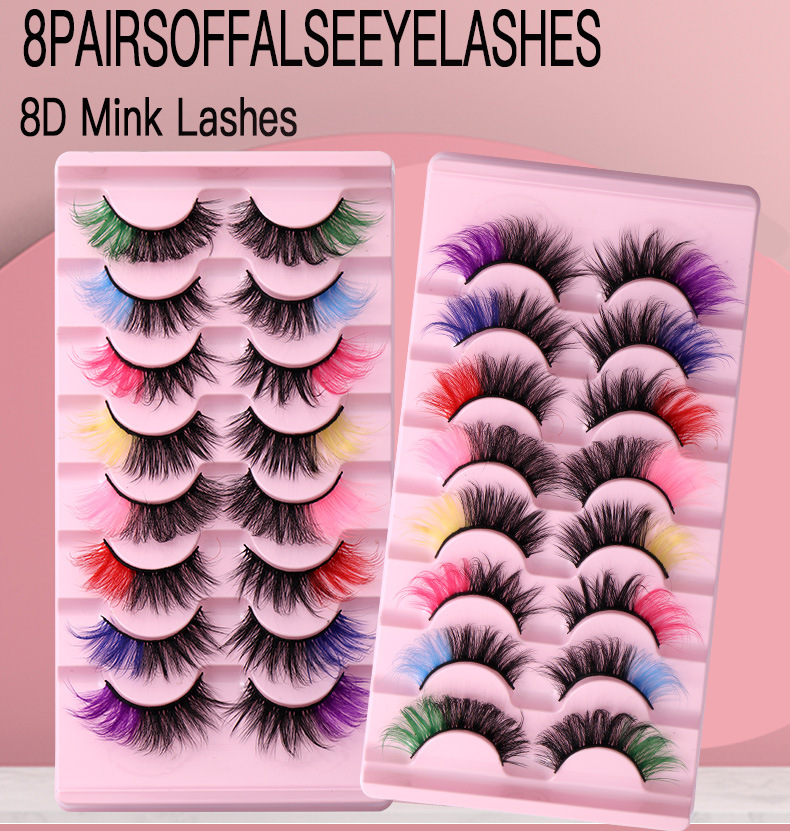 Europa y América transfronteriza 8 pares de pestañas postizas de colores 8D curling pestañas naturales etapa maquillaje rendimiento pestañas postizas al por mayor