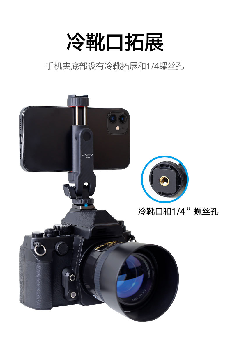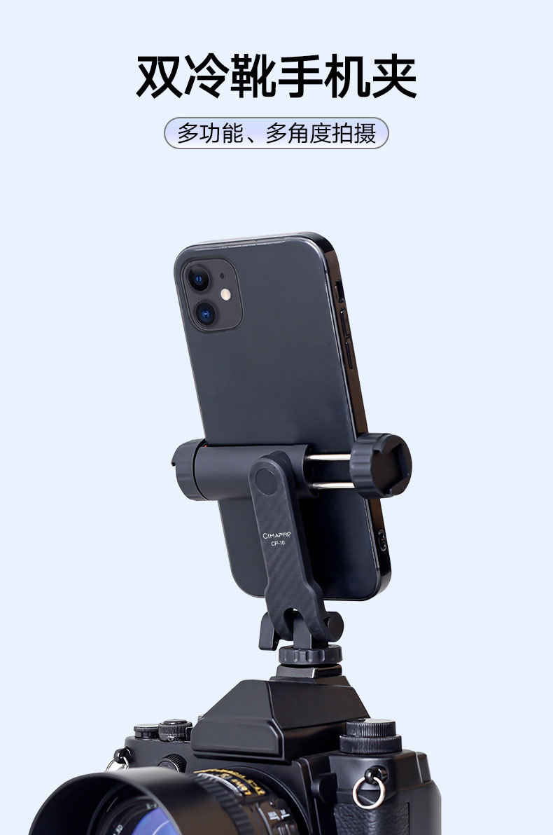 Xixixi rotación horizontal y vertical del teléfono móvil clip de cámara de zapata fría teléfono móvil soporte fijo multifuncional SLR trípode externo