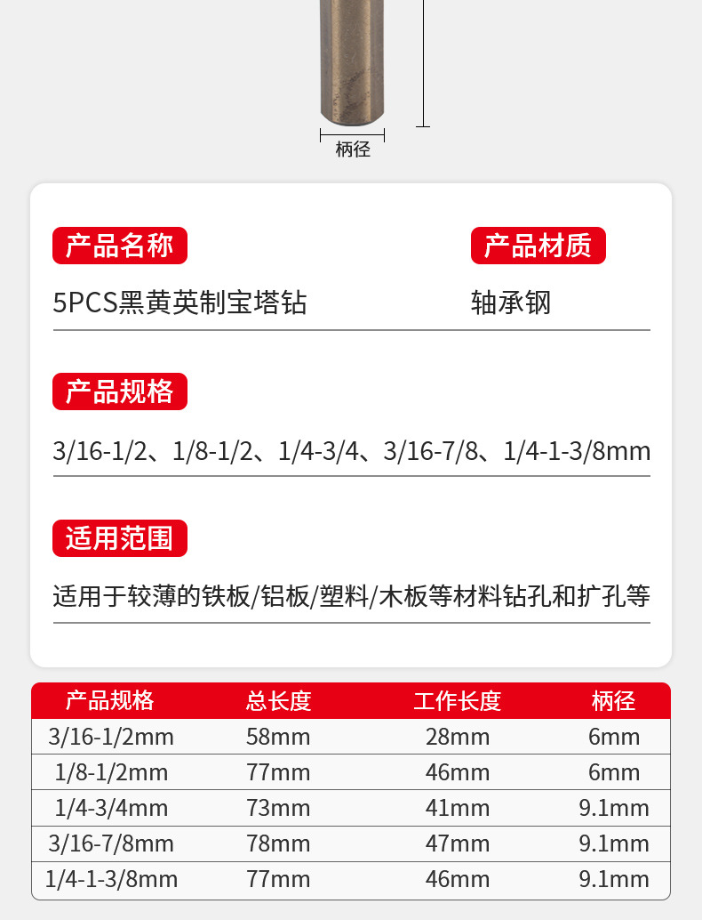 | Modelo | 5PCs broca de pagoda británica [en caja],5PCs broca pagoda británica [Bolsa] |