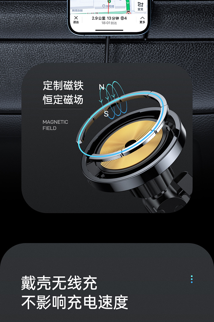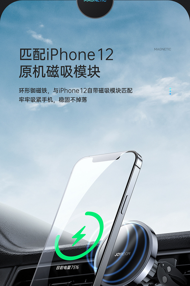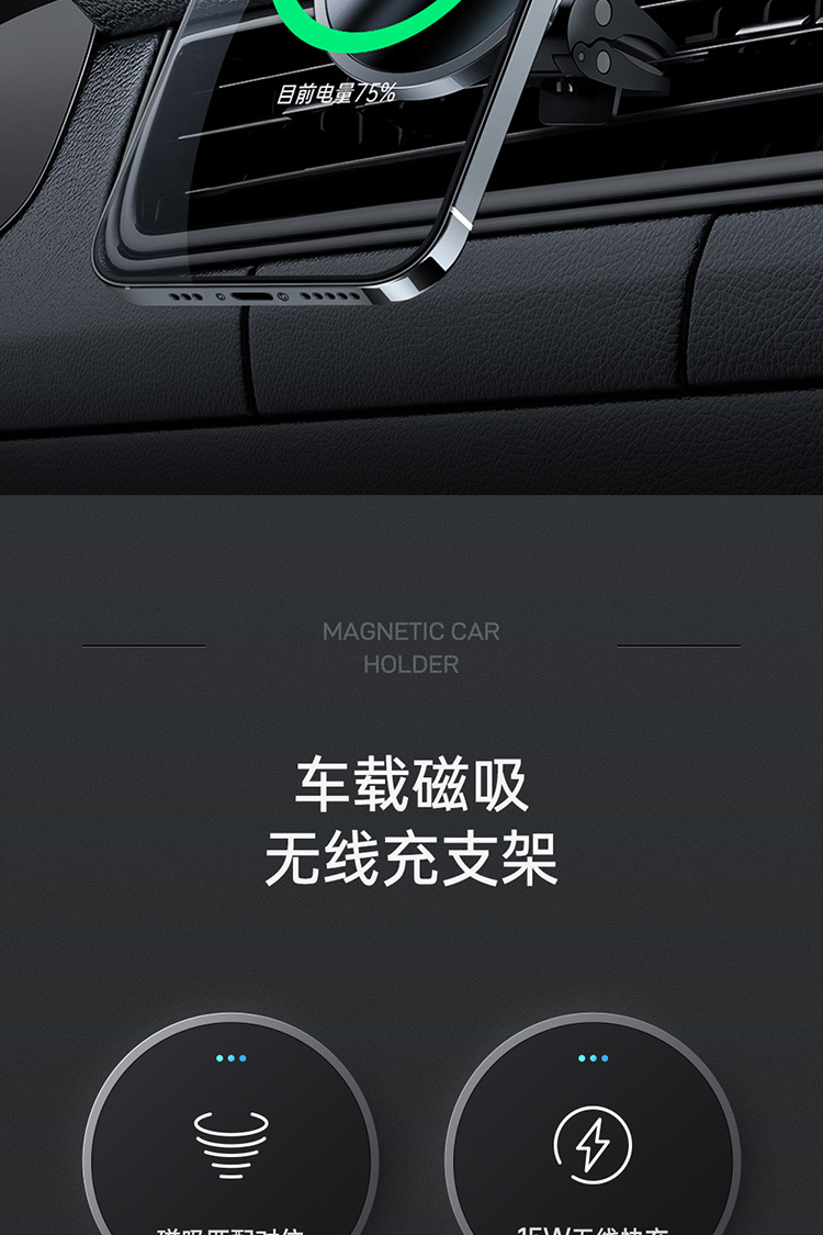 Aplicable a iPhone12 soporte de teléfono móvil Apple 13 carga inalámbrica 15W carga rápida salida de aire del coche soporte de succión magnética