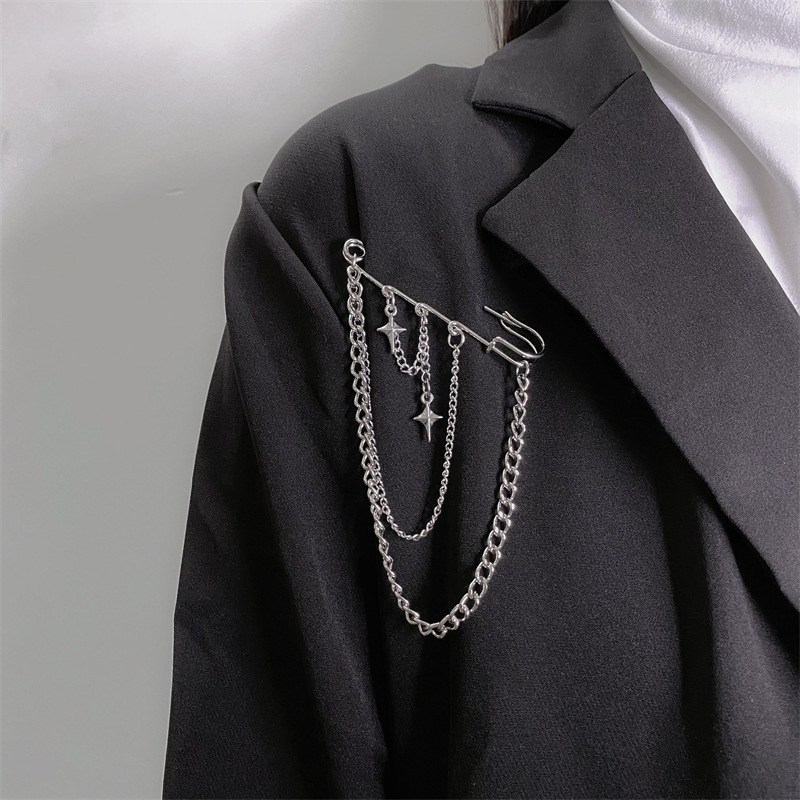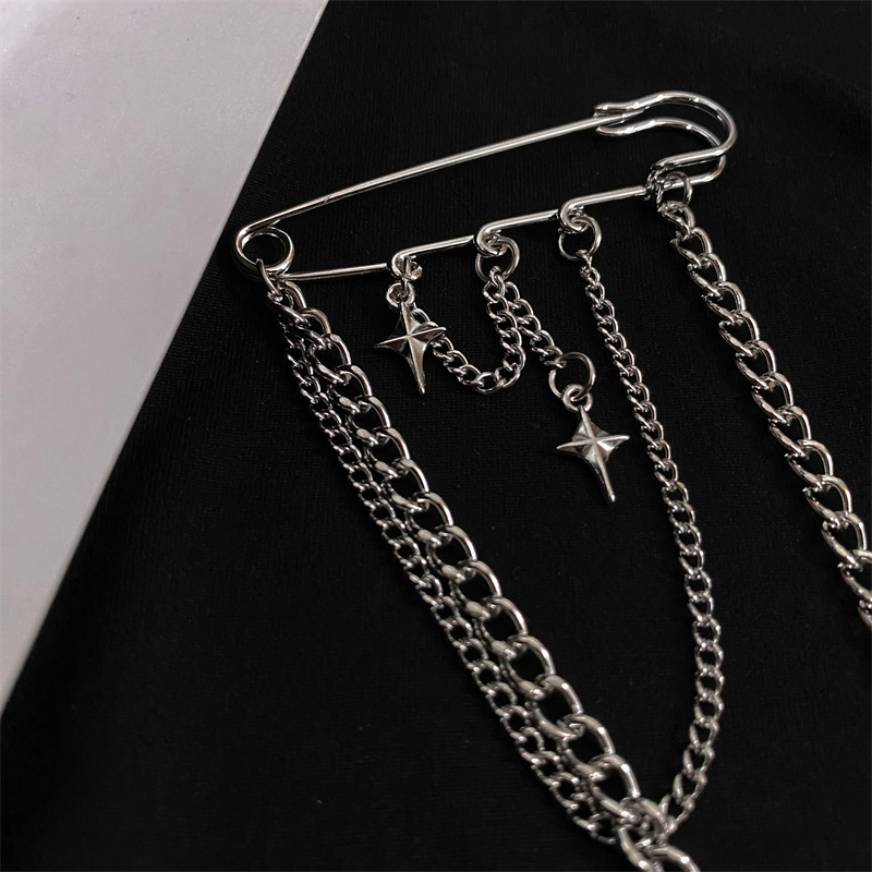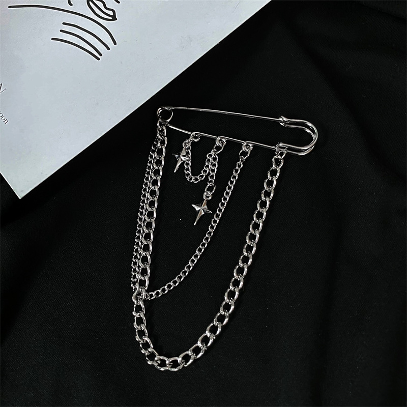 Estilo frío dulce fresco Cruz estrella broche moda femenina traje pin accesorios cadena hip hop nicho personalidad pin moda