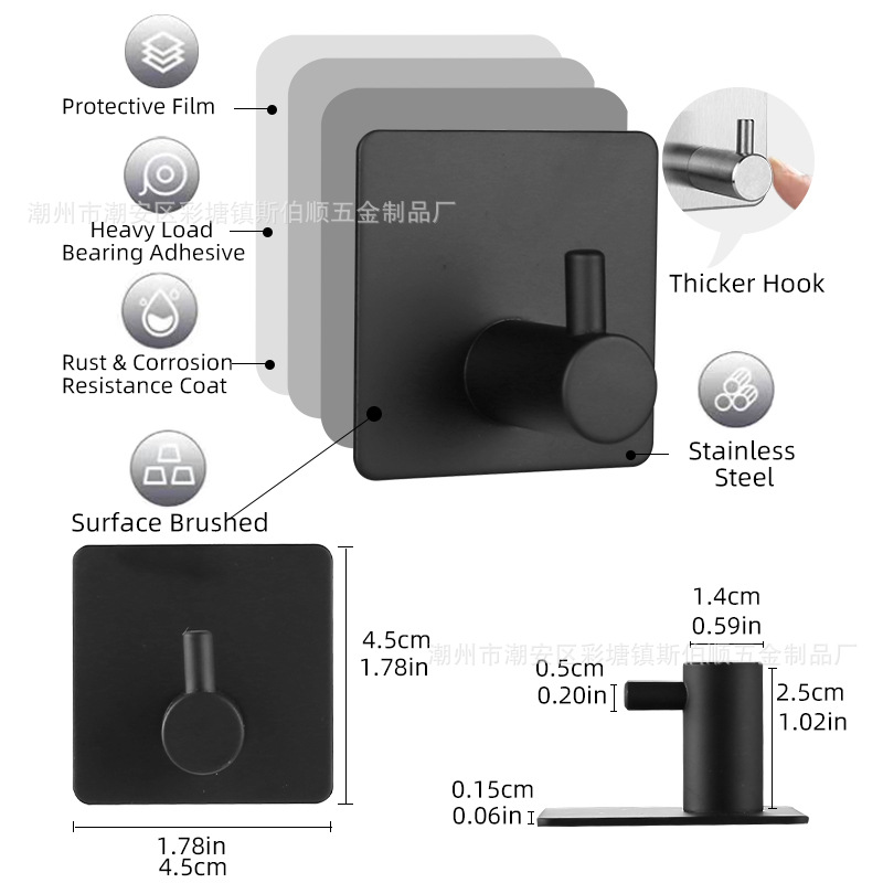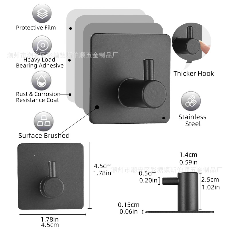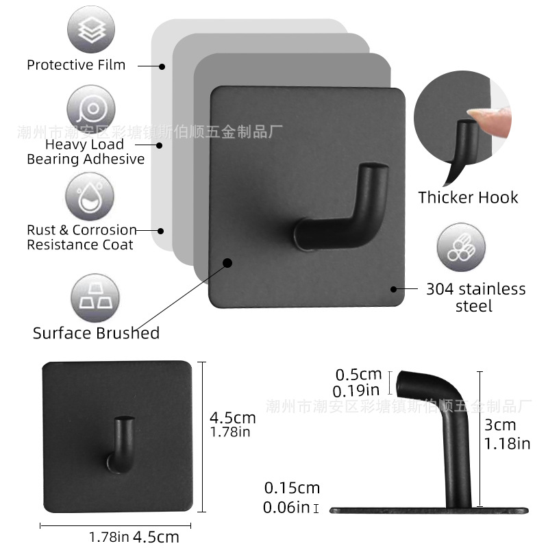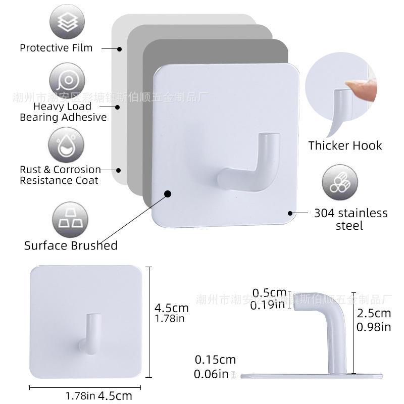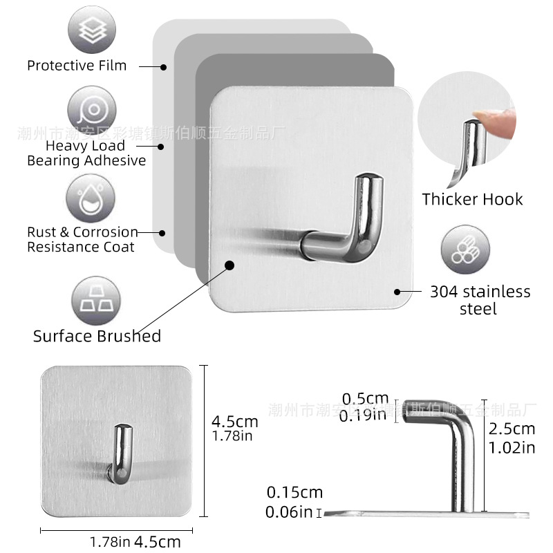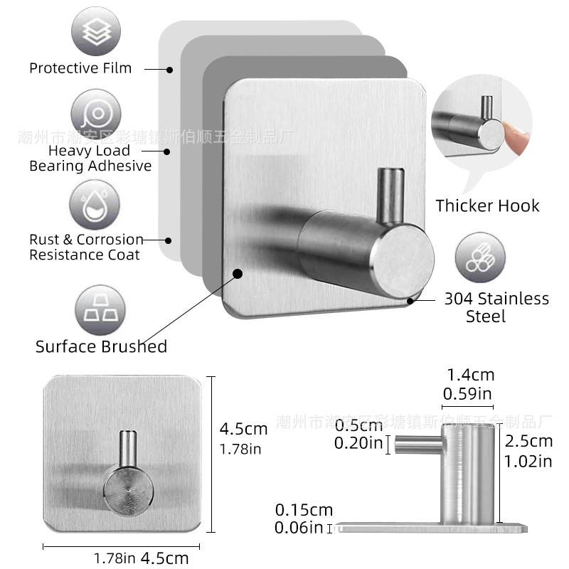 Gancho de acero inoxidable 304 transfronterizo gancho de gravedad de pasta fuerte gancho pegajoso sin perforar gancho único gancho ventas directas de fábrica