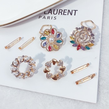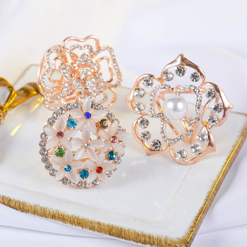 Estilo coreano nuevo chal hebilla rhinestone bufanda hebilla tres anillo personalidad simple broche mujer creativa diamante bufanda hebilla en stock